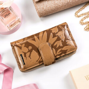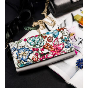 Pojemny portfel damski wykonany ze skóry naturalnej i ekologicznej z kwiatowym tłoczeniem – 4U Cavaldi Portfel jest odszyty z najwyższej jakości skóry naturalnej i ekologicznej. Środek portfela jest wykończony skórą naturalną o ziarnistej fakturze, zaś strona zewnętrzna to lakierowana skóra eko z tłoczonym motywem kwiatków. Modny fason i wysoka funkcjonalność. Praktyczny i bardzo pojemny – wnętrze portfela…