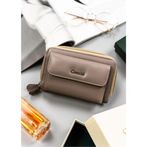 Portfel damski ze skóry naturalnej z portmonetką na bigiel – 4U Cavaldi Najwyższej jakości portfel damski ze skóry naturalnej, który: ma 1 kieszeń na bilon; ma 2 kieszenie na banknoty; ma 6 przegródek na karty (w tym 1 jest przeznaczona na fotografię); nie mieści dowodu rejestracyjnego; jest bezpieczny – posiada funkcję RFID. Sekcja na pieniądze…