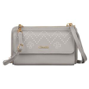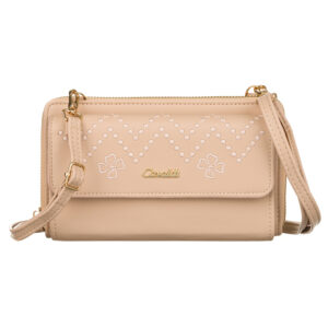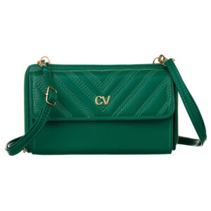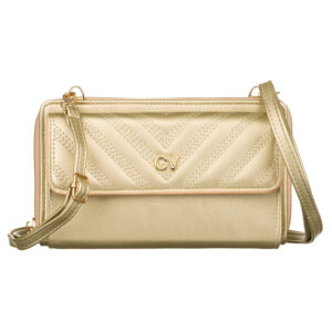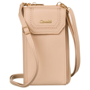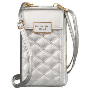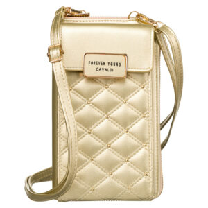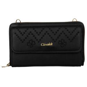 Mini torebka-portfel damska ze skóry ekologicznej – 4U Cavaldi Torebko-portfel w fasonie piórnika zapinany na zamek; Na froncie kieszonka na telefon zapinana klapką na zatrzask magnetyczny; Wewnątrz 4 miejsca na karty i 1 kieszonka na suwak; Posiada odpinany, regulowany pasek; Odszyty z wysokogatunkowej skóry ekologicznej; Elegancki, pikowany panel na froncie zdobiony drobnymi dżetami w złotym…