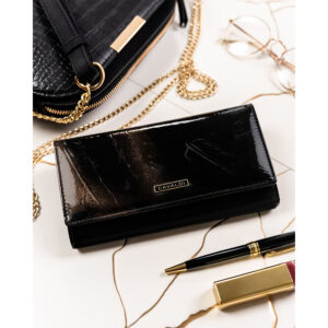 Elegancki portfel damski ze skóry naturalnej i ekologicznej – 4U Cavaldi Skóra naturalna+eko | Środek portfela jest wykończony skórą naturalną o ziarnistej fakturze, zaś strona zewnętrzna to lakierowana, mieniąca się skóra eko. Pod warstwą lakieru wytłoczono stylowy wzór; Pomieścisz w nim sporą ilość kart | Ten model zaprojektowano niezwykle intuicyjnie i funkcjonalnie. Pomieścisz w nim pokaźne ilości kart, dokumentów…