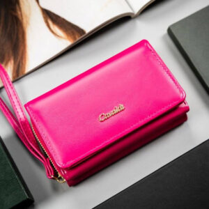 Klasyczny, poziomy portfel damski ze skóry ekologicznej – 4U Cavaldi Materiał i wykonanie | Wykonany ze skóry ekologicznej o gładkiej fakturze; Dużo praktycznych przegródek | Portfel o wysokiej funkcjonalności przy jednocześnie stosunkowo średnich rozmiarach. Dobrze zorganizowane wnętrze pozwoli na przechowywanie wszystkich potrzebnych kart i dokumentów; Portfel ze smyczą | Wyposażony w 16 cm smyczkę do wygodnego noszenia…