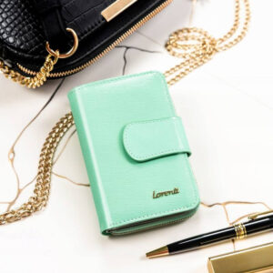 Elegancka portmonetka damska na zatrzask i bigiel — Lorenti Materiał i wykonanie | Wykonany z wysokogatunkowej skóry naturalnej o gładkiej, metalicznej fakturze; Kompaktowe wymiary | Model idealny do wszystkich małych torebek; Funkcjonalność | Pomimo niewielkich rozmiarów pomieści wszystko, co najpotrzebniejsze, czyli kartę/dokument oraz gotówkę; Bezpieczeństwo | Portfel wyposażony w system STOP RFID, który zabezpiecza kartę w portfelu przed kradzieżą środków…