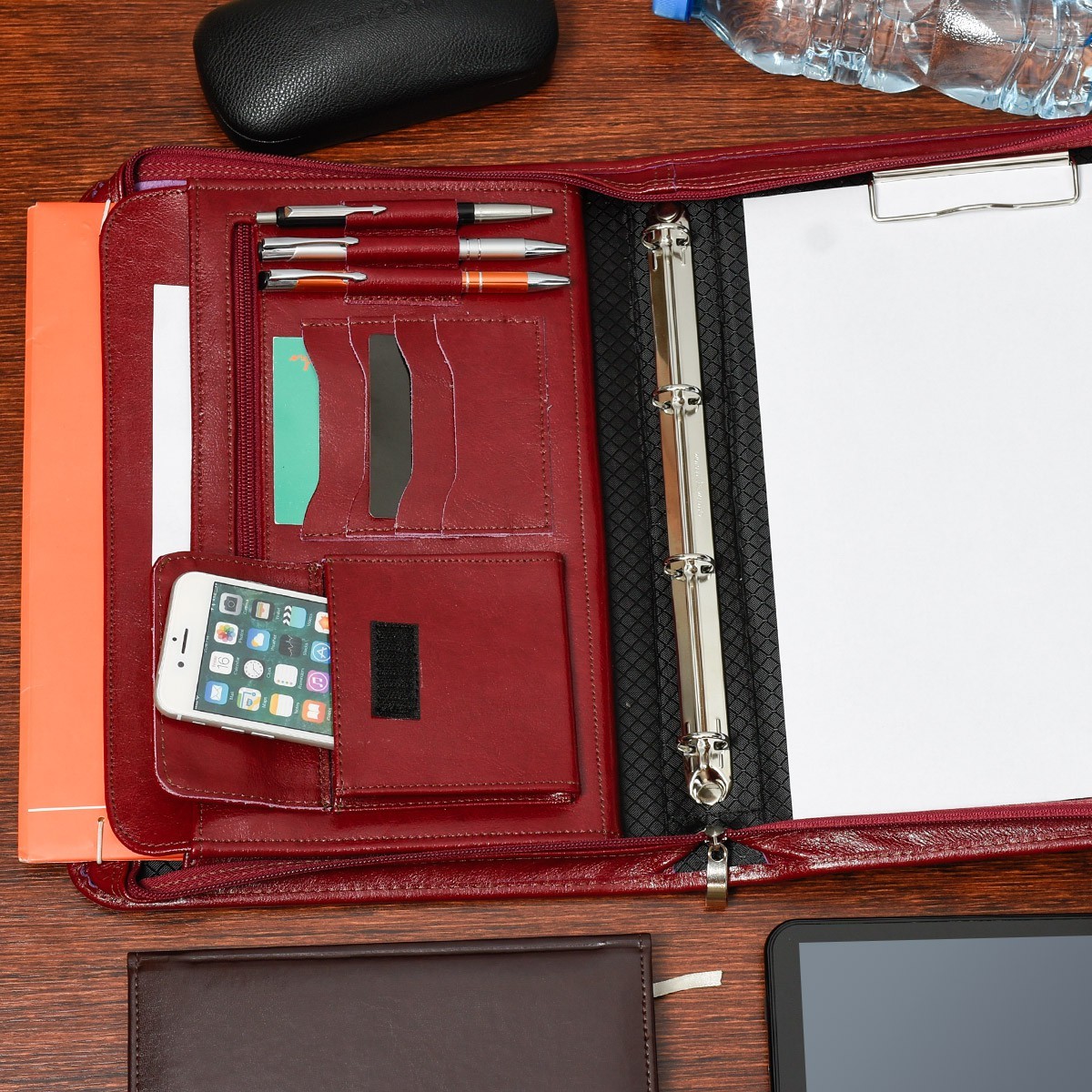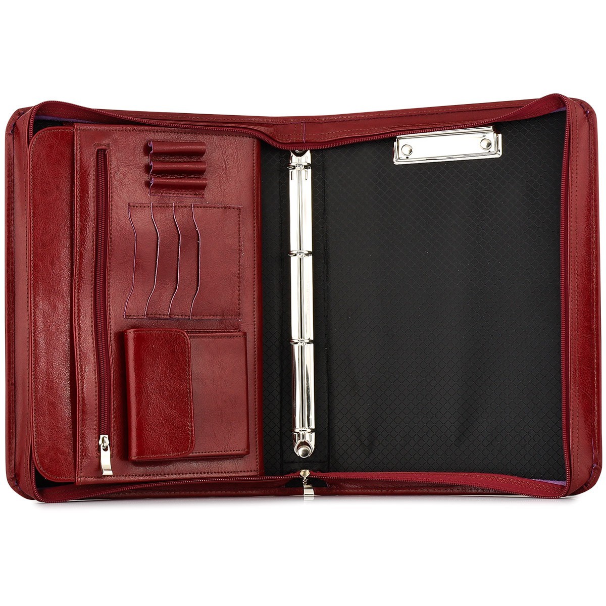 - W środku po prawej stronie jest specjalny klips na dokumenty formatu A4 oraz segregator