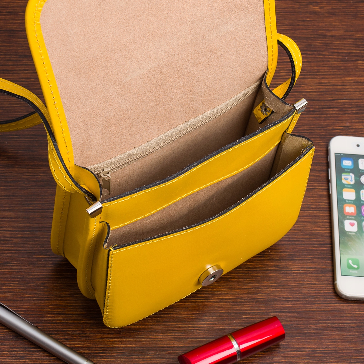 Żółta Beltimore Damska Skórzana Mała Torebka Listonoszka K66