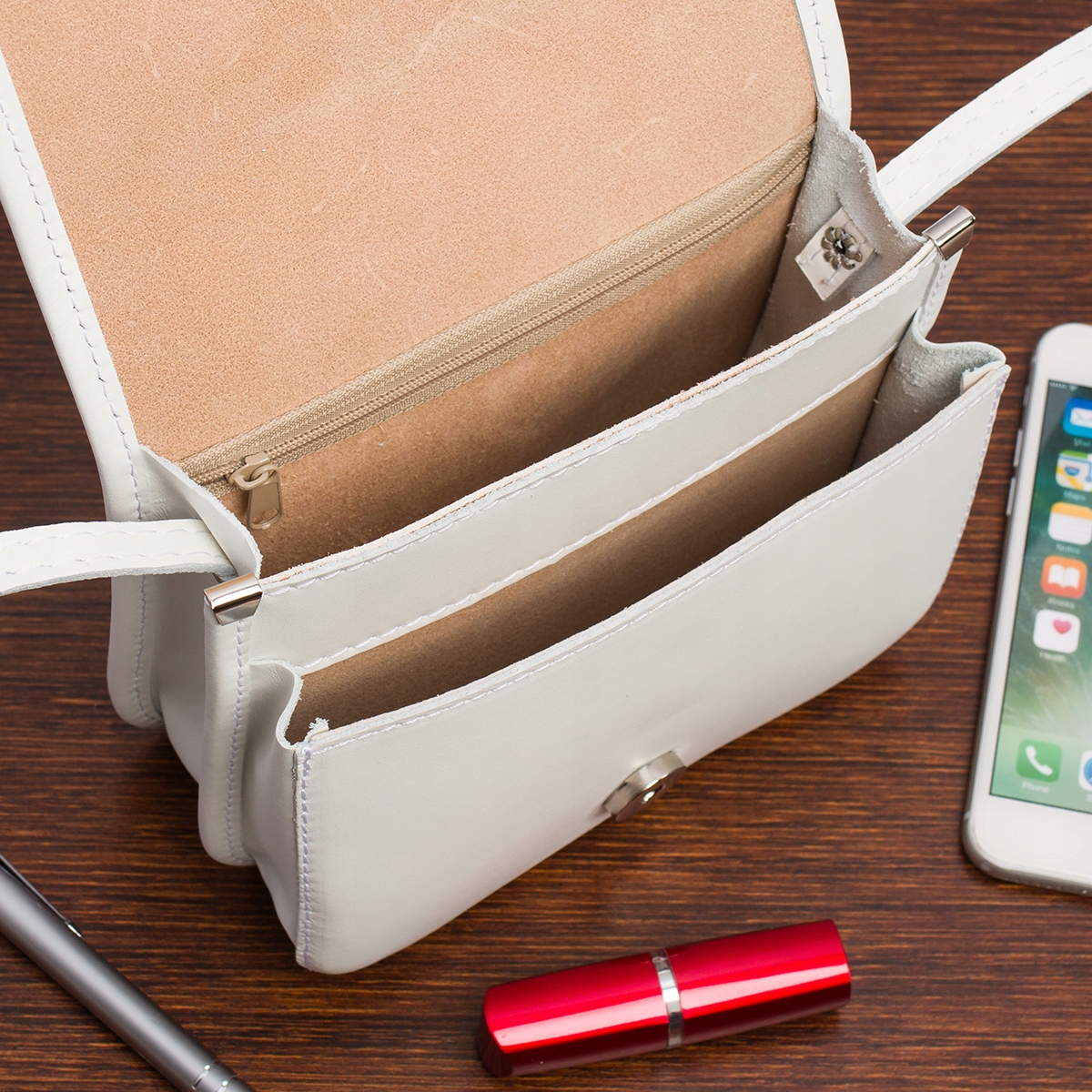 Biała Beltimore Damska Skórzana Mała Torebka Listonoszka K66