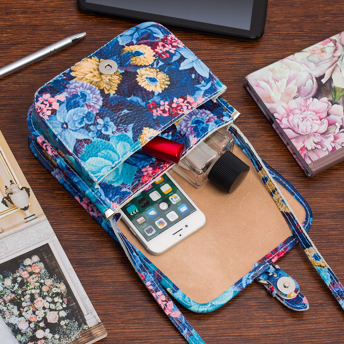 Niebieski kwiaty Beltimore Damska Skórzana Mała Torebka Listonoszka K66
