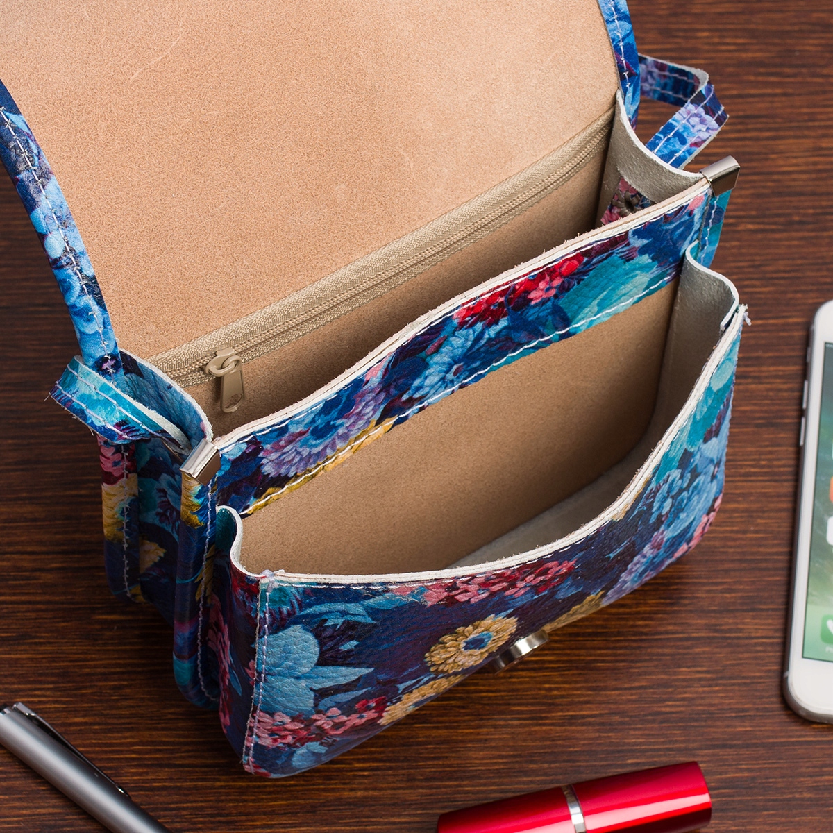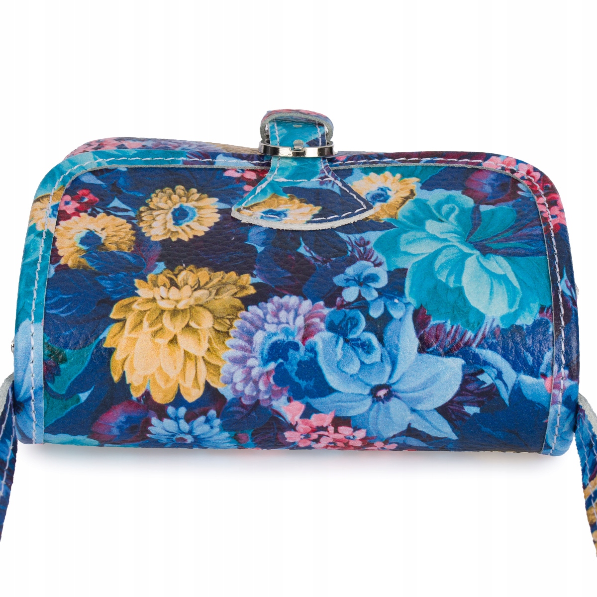 Prezentowana jest torebka w kolorze niebieskie kwiaty.