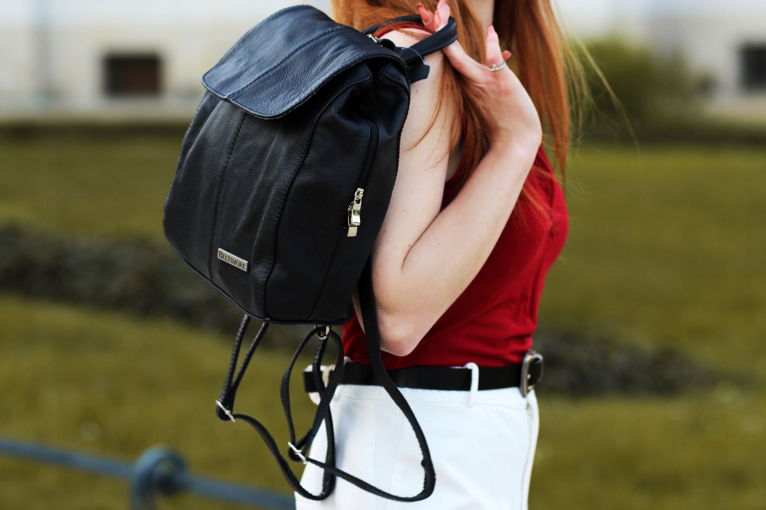 - Skórzana rączka o długości ok.23 cm pozwala w wygodny sposób przenosić plecak w ręce, a także zawiesić go na wieszaku lub krześle