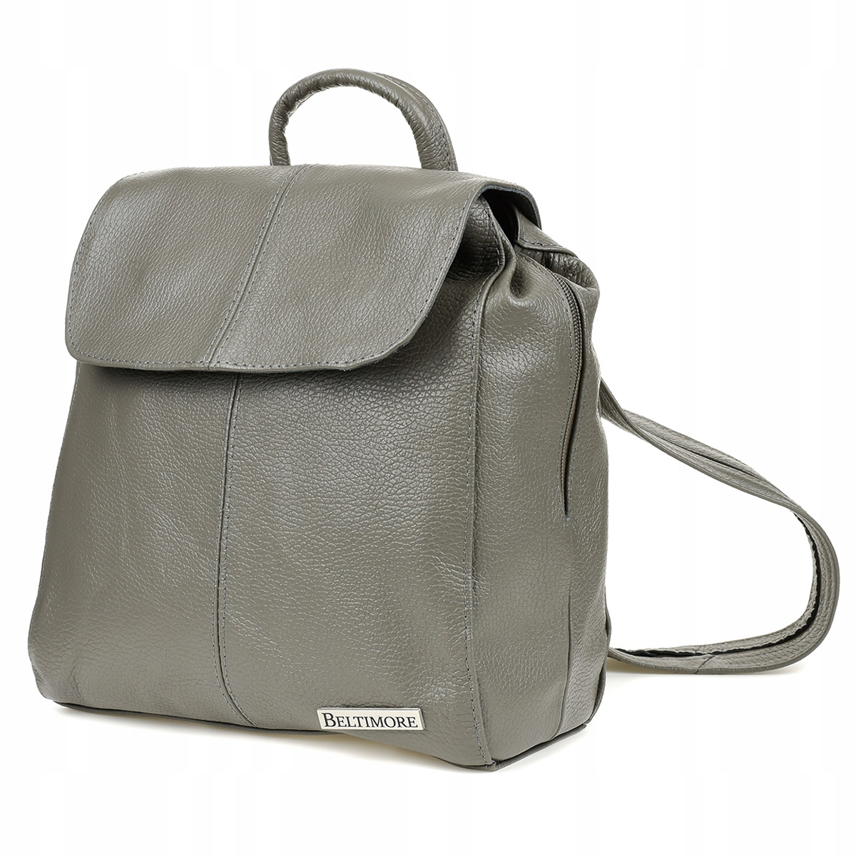 Solidny, skórzany, damski plecak, wyprodukowany w Polsce, ze skóry naturalnej Model NATALIA marki Beltimore®- w tej ofercie dostępny jest szary kolor plecaka.