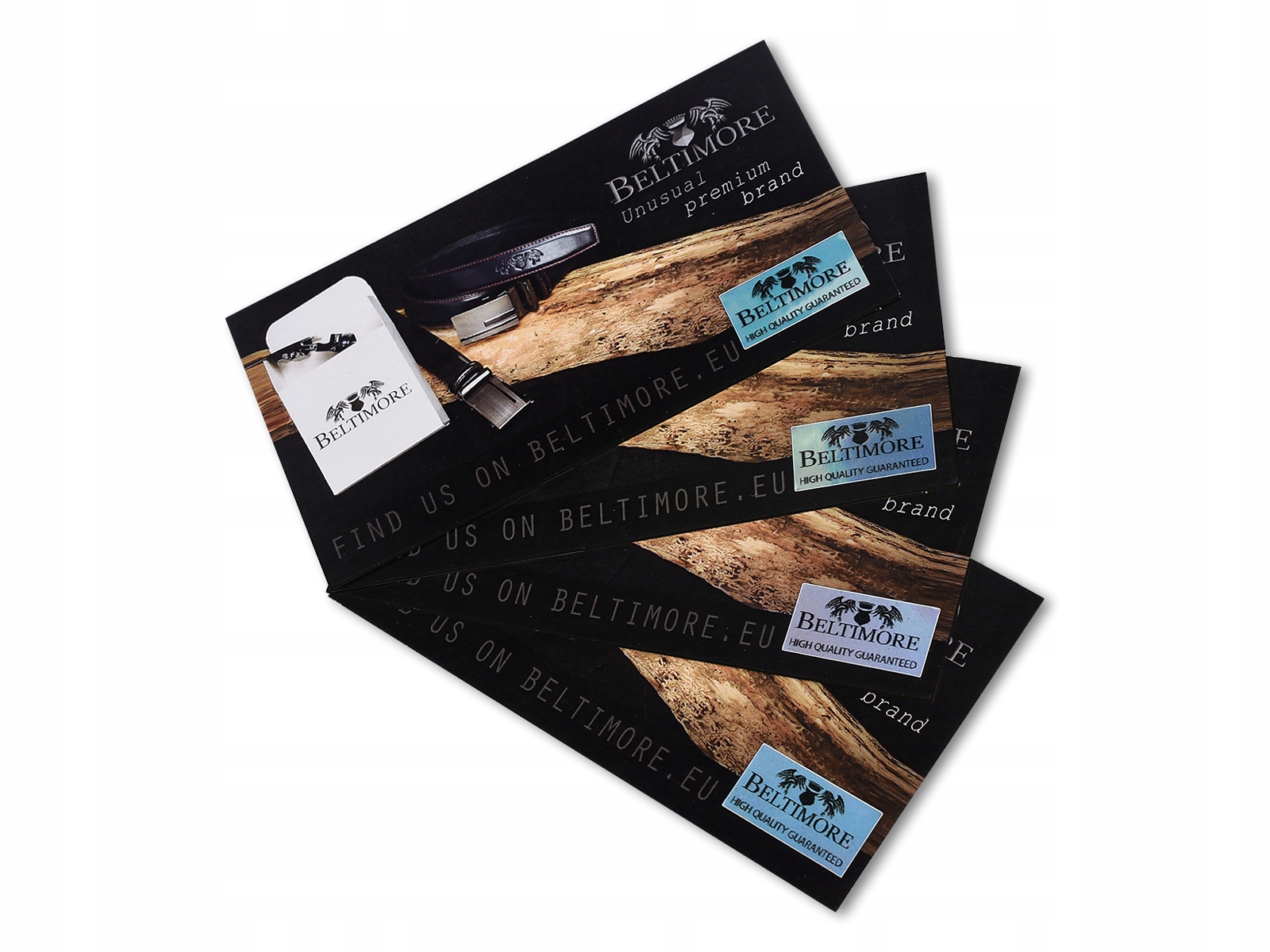 Beltimore to marka działająca na rynku europejskim, oferująca głównie paski skórzane i parciane oraz dodatki galanteryjne. Do każdego produktu dodajemy oryginalne pudełko ekologiczne asygnowane logo marki. Wraz z paskiem dołączamy również wizytówkę producenta zabezpieczoną hologramem.