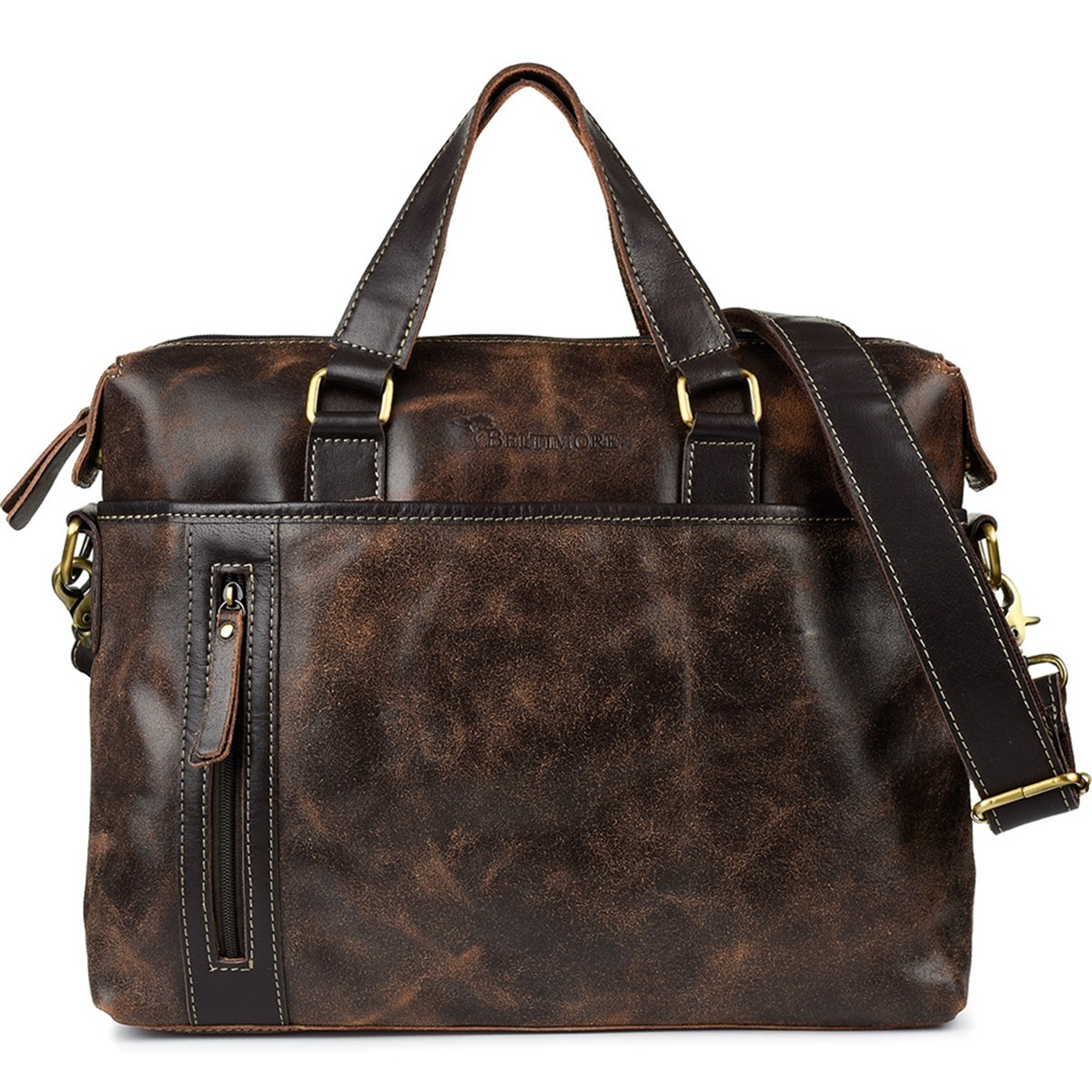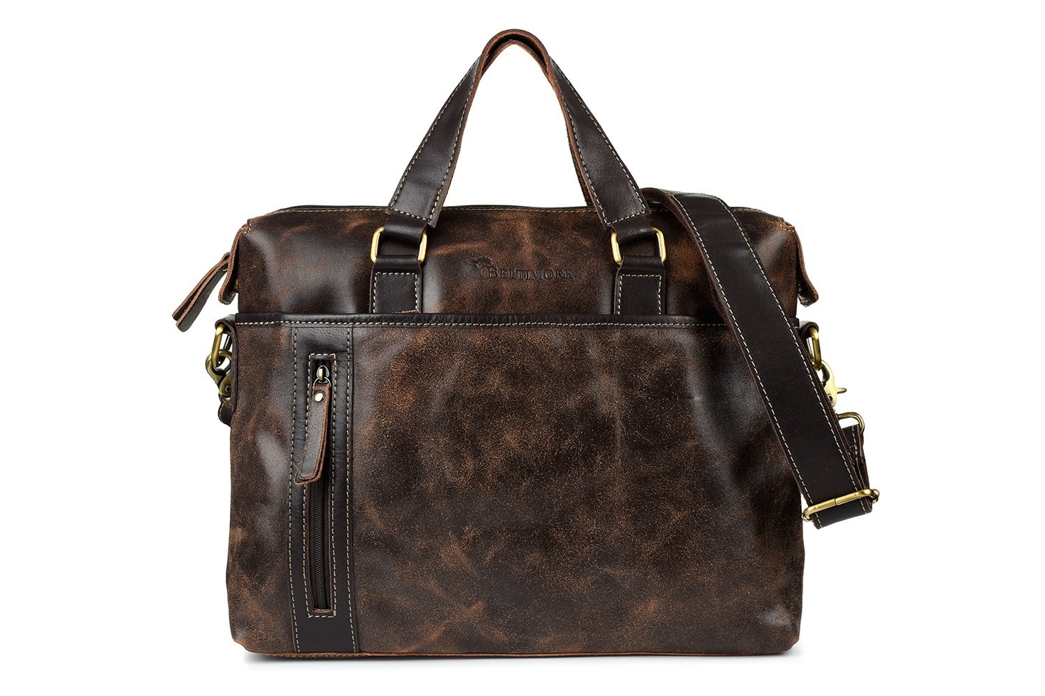 Ekskluzywna, wysokiej jakości, męska torba serii vintage na ramię marki Beltimore wykonana z naturalnej skóry nubuk, w eleganckim, brązowym odcieniu