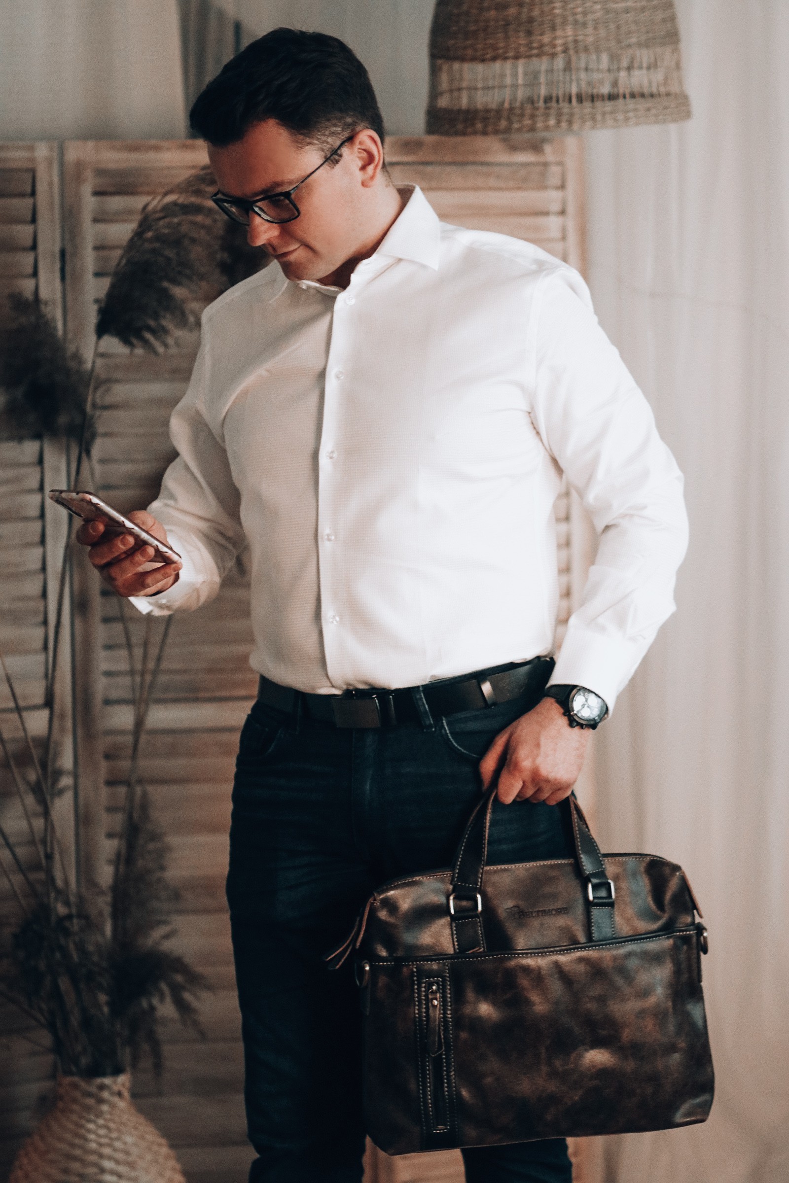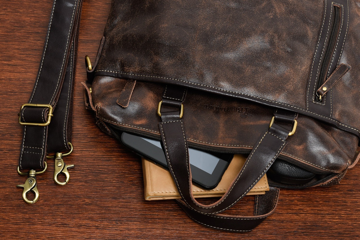 - Torba wyprodukowana z wysokogatunkowej, trwałej skóry naturalnej nubuk