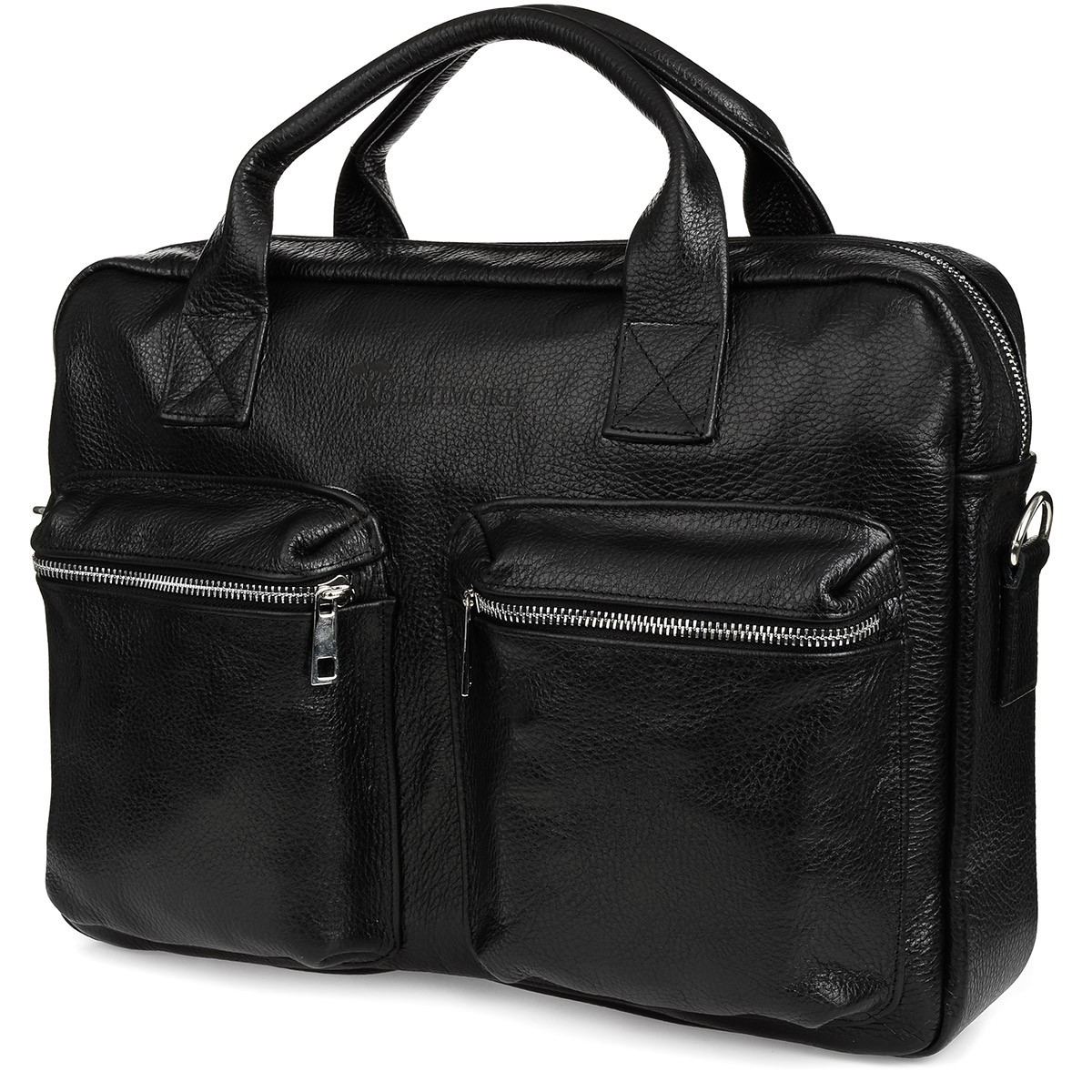 • Na froncie znajduje się wytłoczone w skórze logo marki