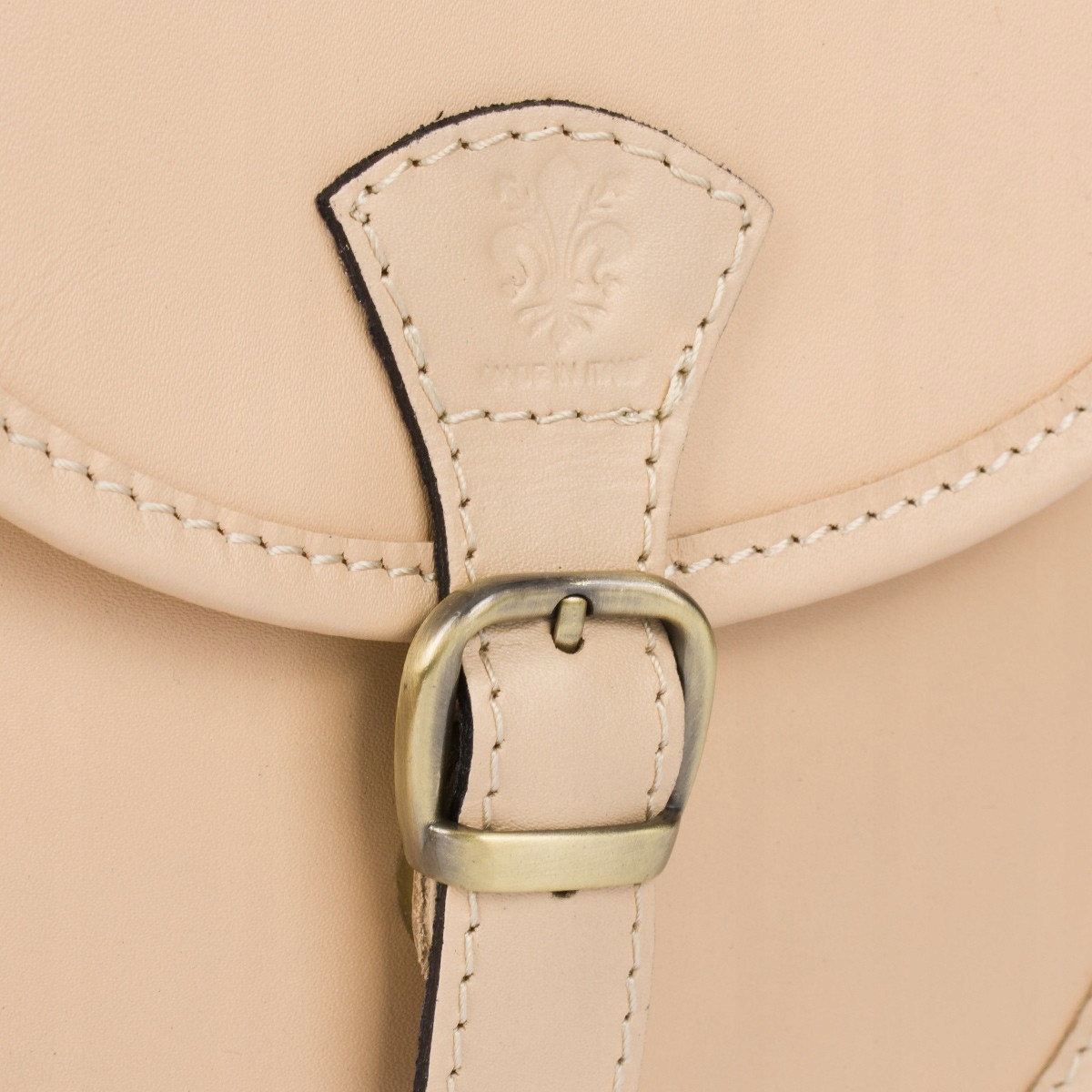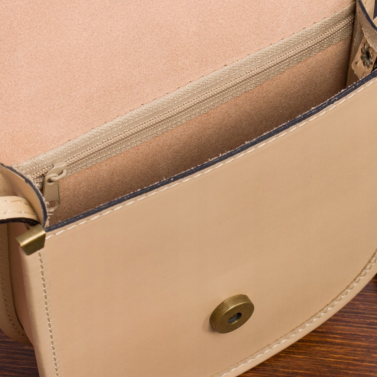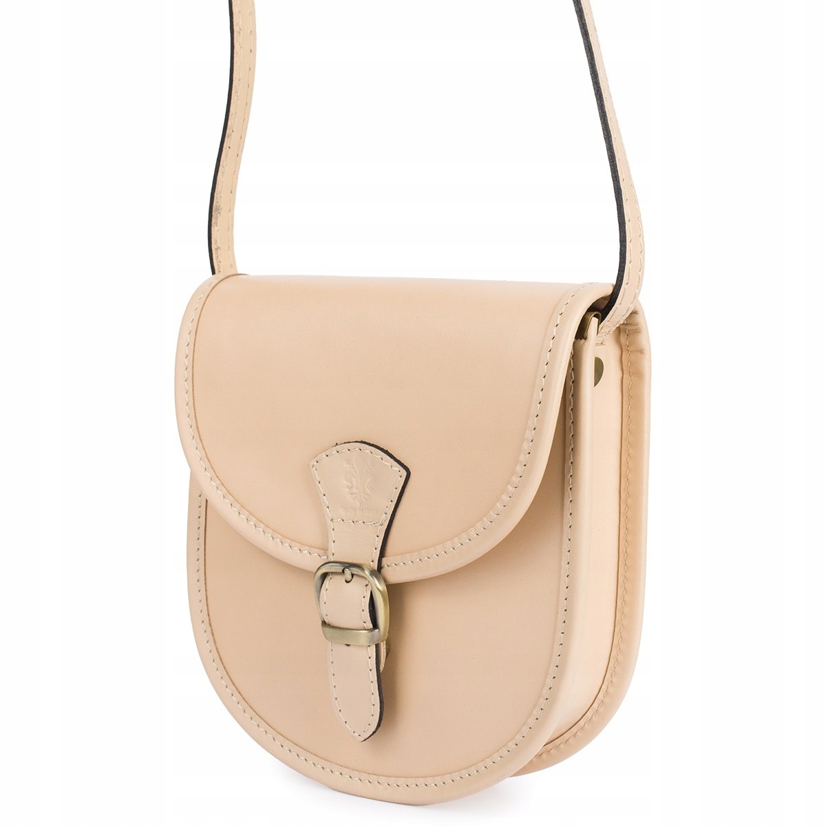 Beżowa Beltimore Damska Skórzana Mała Torebka Listonoszka podkówka sztywna