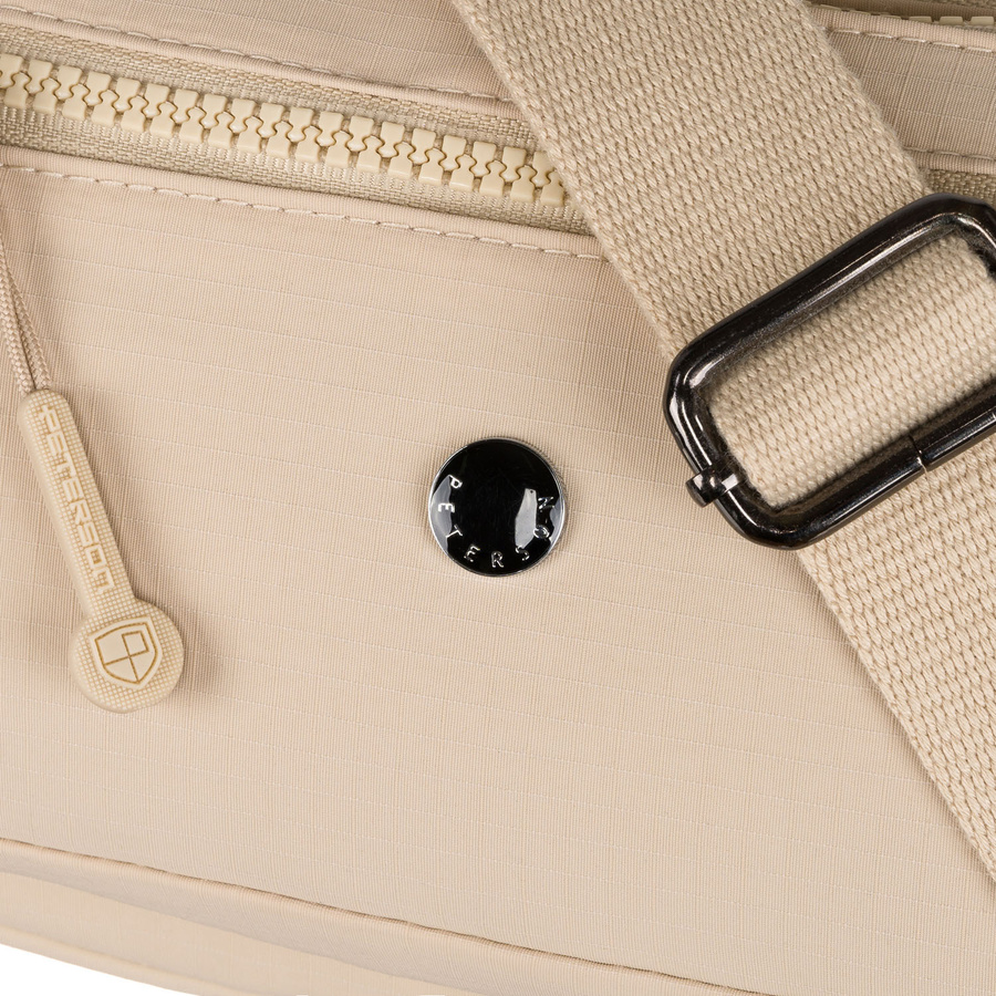 Beżowa listonoszka damska wykonana z poliestru - PetersonBeżowa listonoszka damska wykonana z poliestru – Peterson