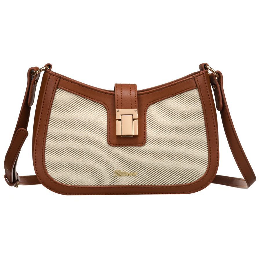 Beżowo-brązowa listonoszka damska ze skóry naturalnej i płótna poliamidowego – Peterson