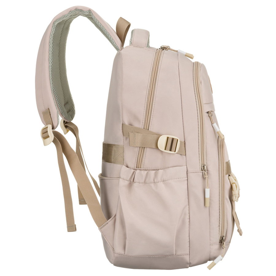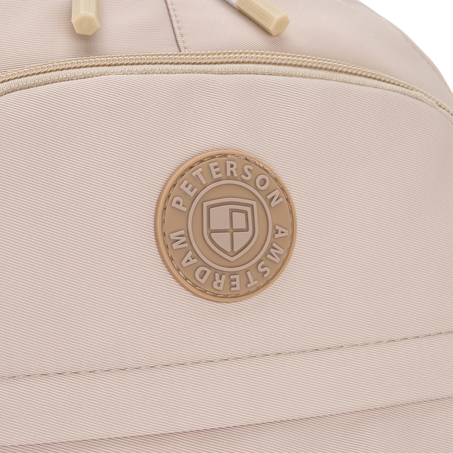 Beżowy, modny plecak szkolny z poliestru zawieszony na regulowanych szelkach – Peterson