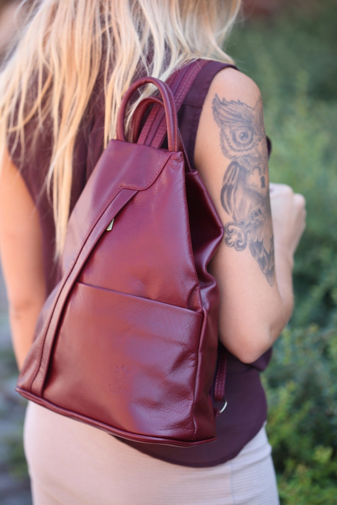 Beżowy Vera Pelle włoski Plecak Skórzany damski