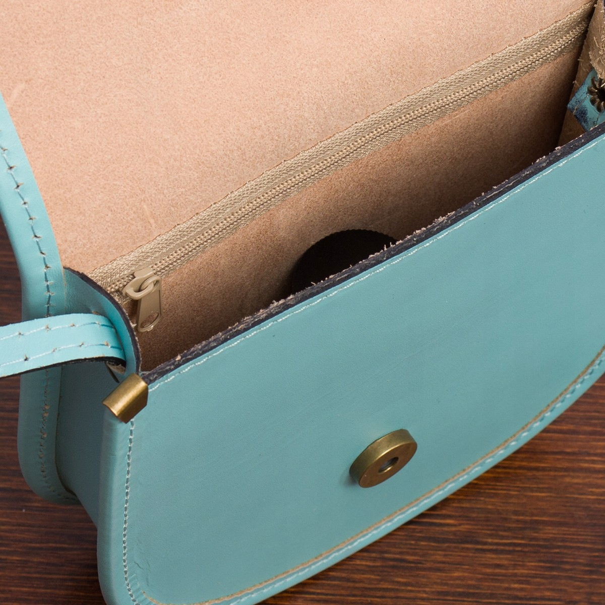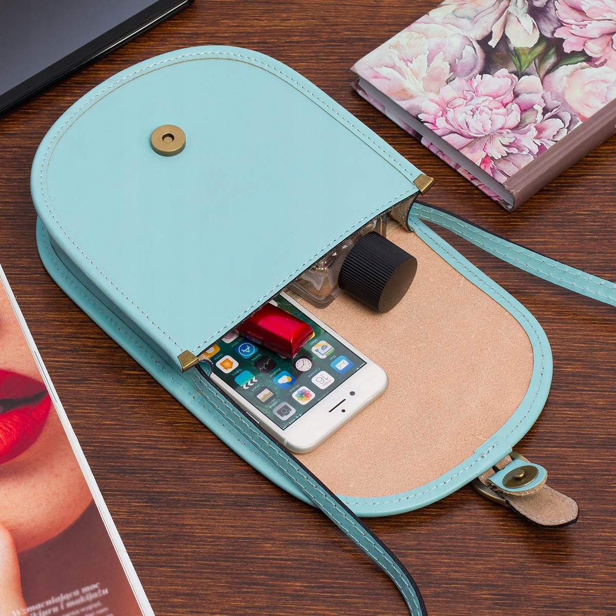 Błękitna Beltimore Damska Skórzana Mała Torebka Listonoszka podkówka
