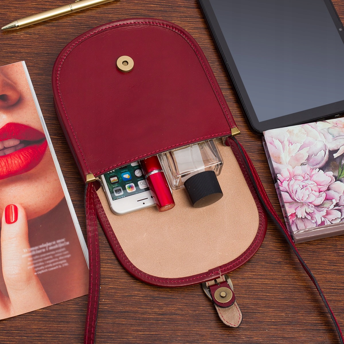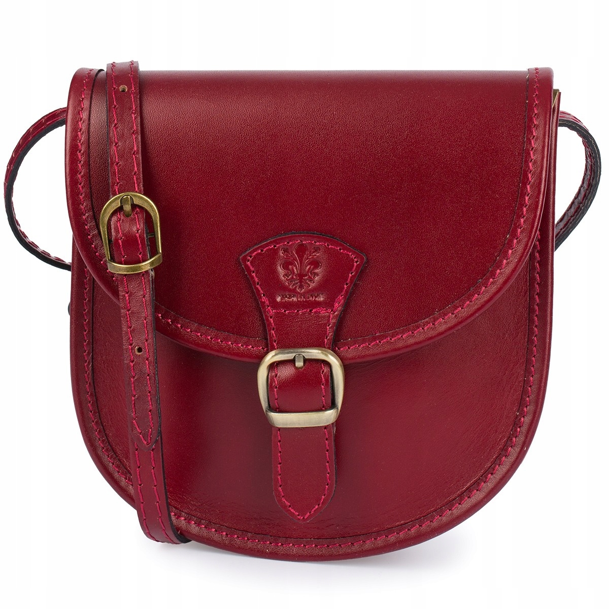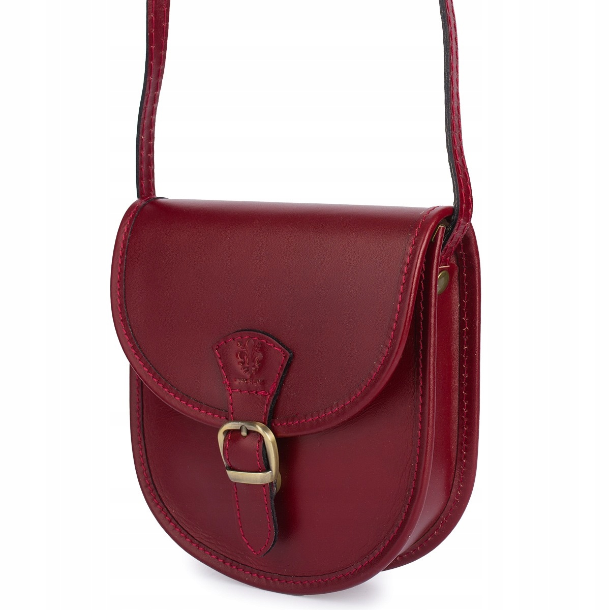 Bordowa Beltimore Damska Skórzana Mała Torebka Listonoszka podkówka sztywna