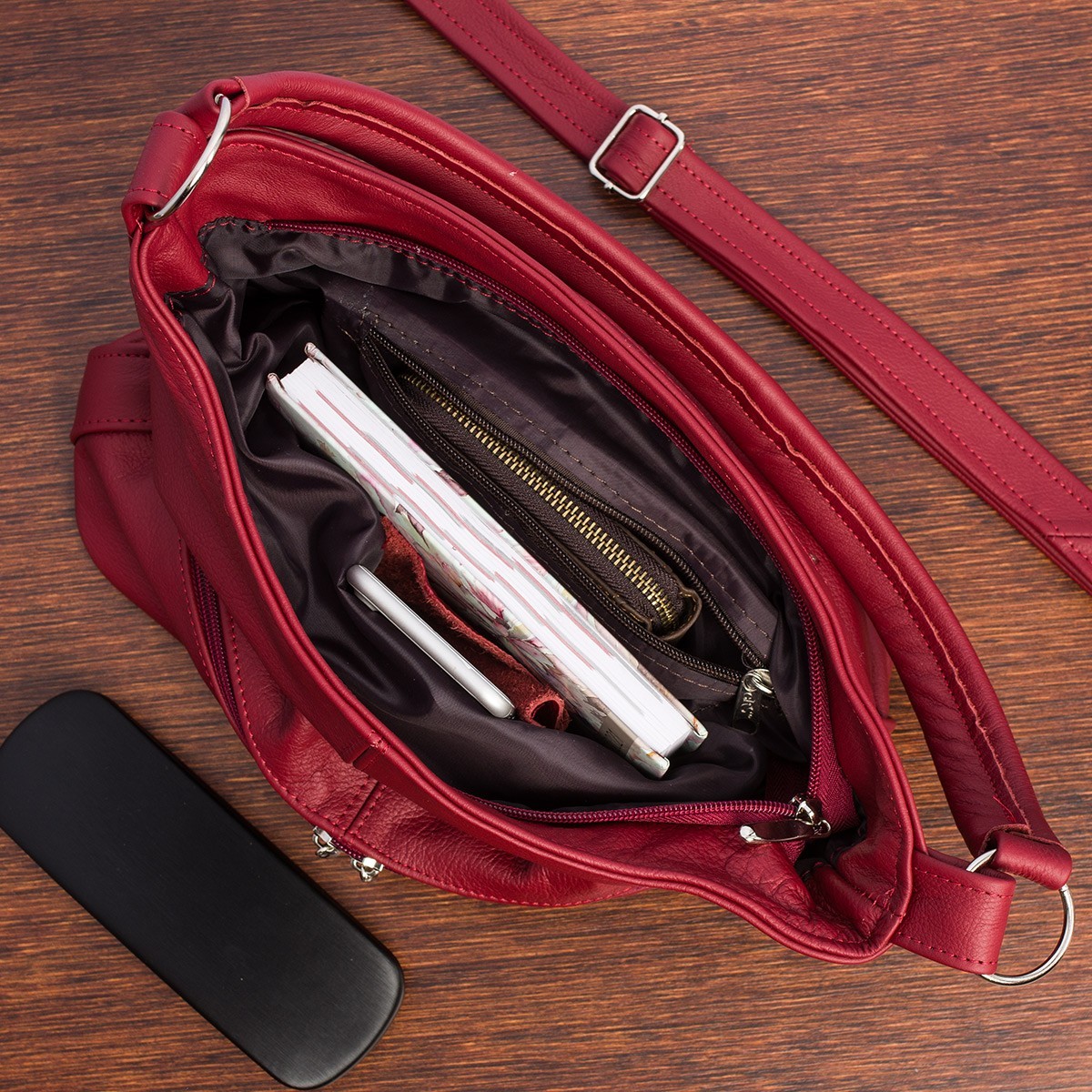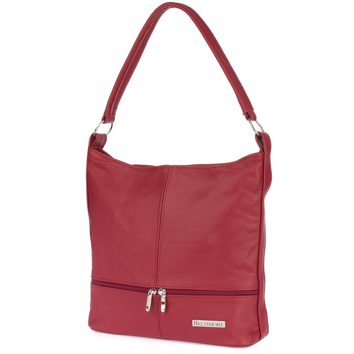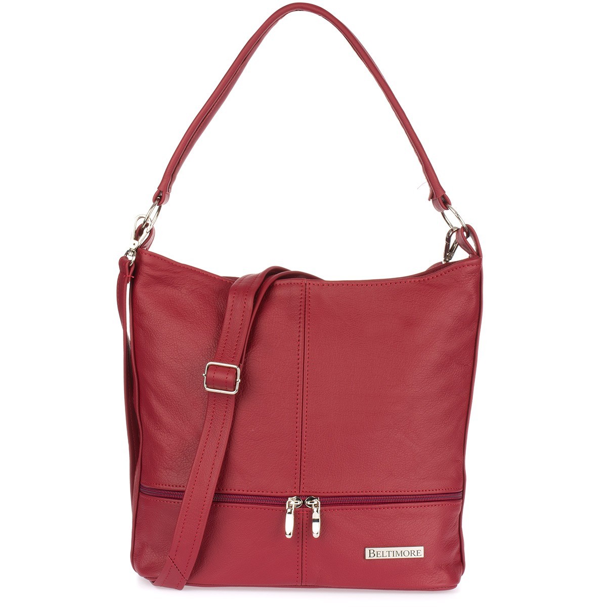Bordowa skórzana listonoszka damska dwa paski Beltimore I66