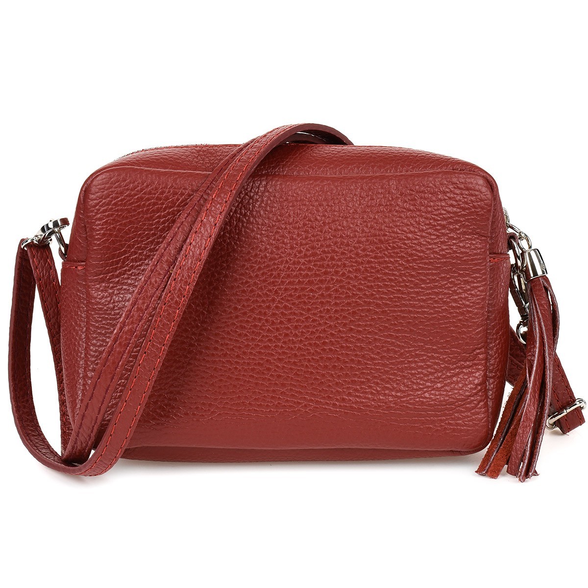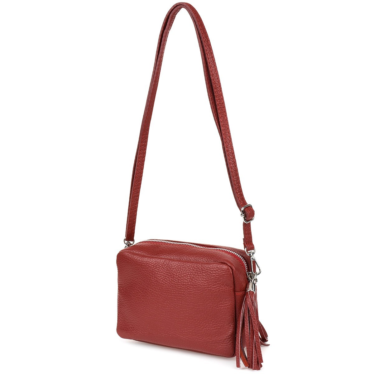 Bordowa torebka damska listonoszka skórzana z frędzlem modna C74