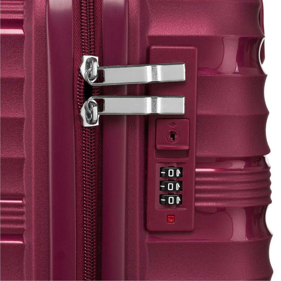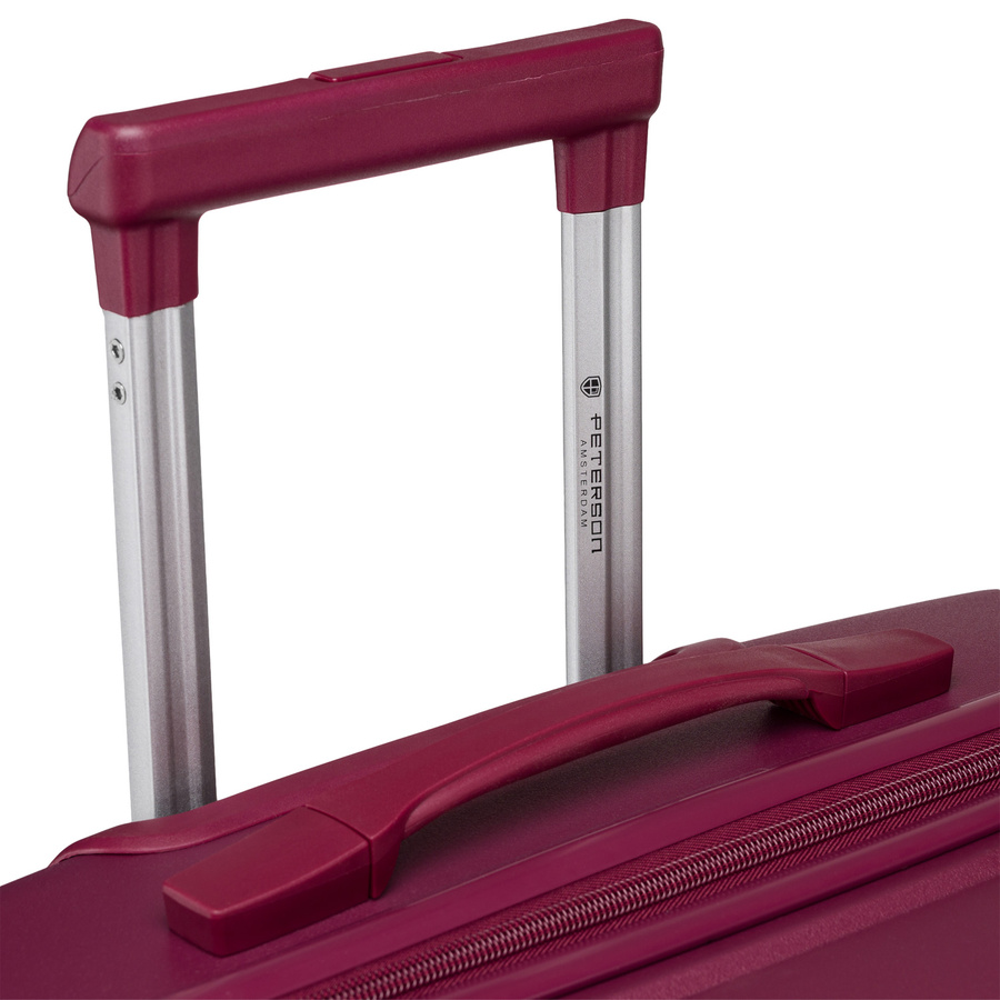 Bordowa walizka kabinowa z zamkiem szyfrowym i czterema kółkam – Peterson