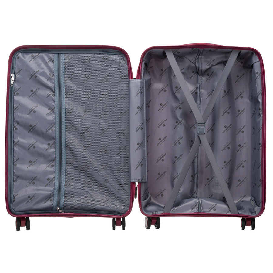- Pierwszej komory, która posiada elastyczne pasy w kształcie litery X — to sprawdzone rozwiązanie, które skutecznie stabilizuje zawartość walizki.