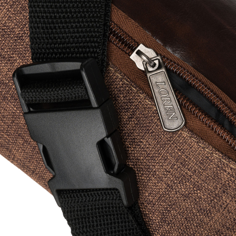 Brązowa saszetka z poliestru zawieszona na regulowanym pasku – Loren
