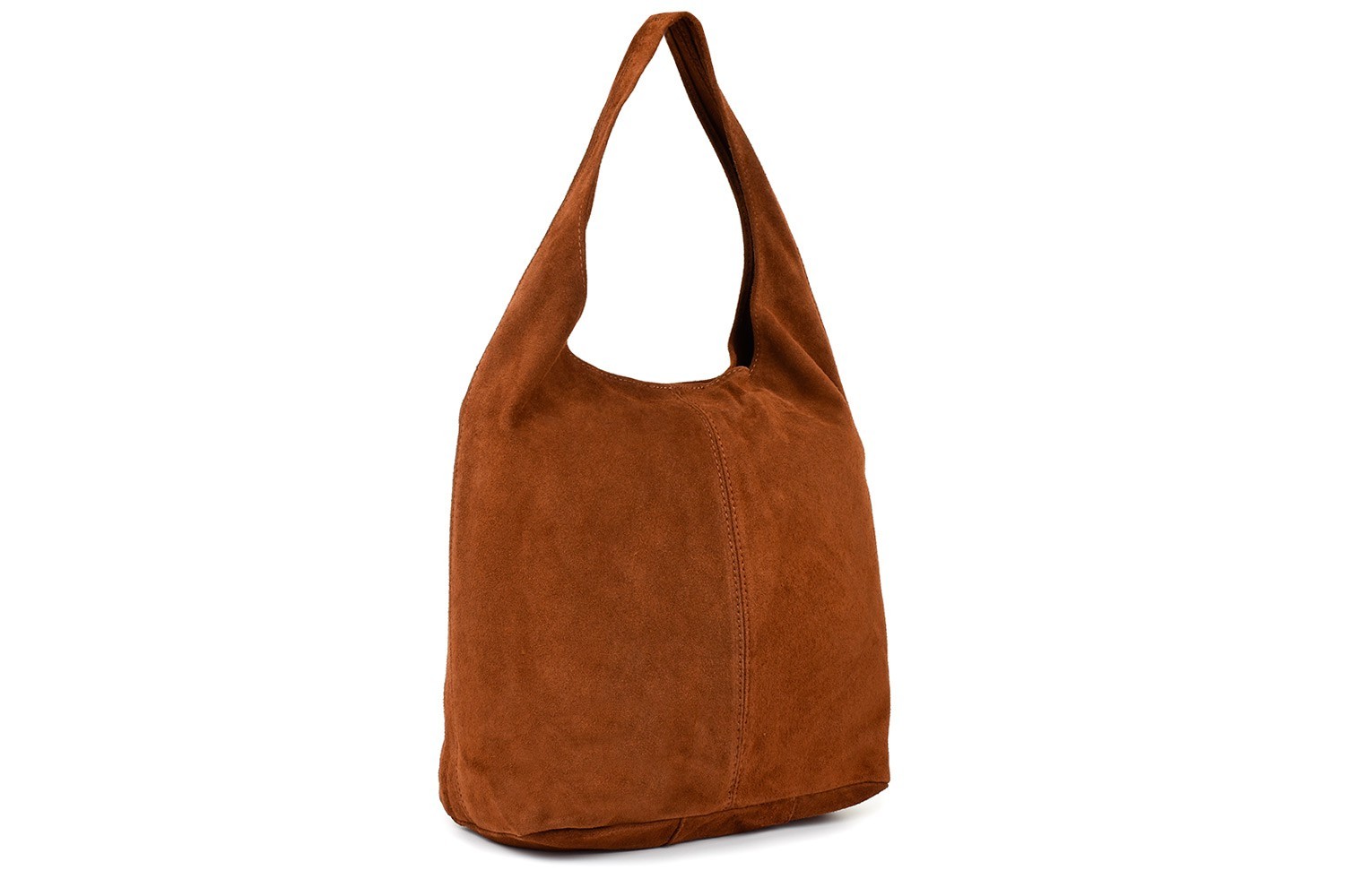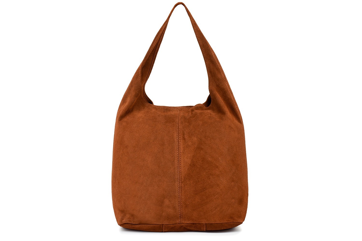 Prosta, miękka, lekka, skórzana torba- worek w fantastycznych kolorach, wyprodukowana we Włoszech, z włoskiej skóry naturalnej zamszowej w brązowym kolorze.