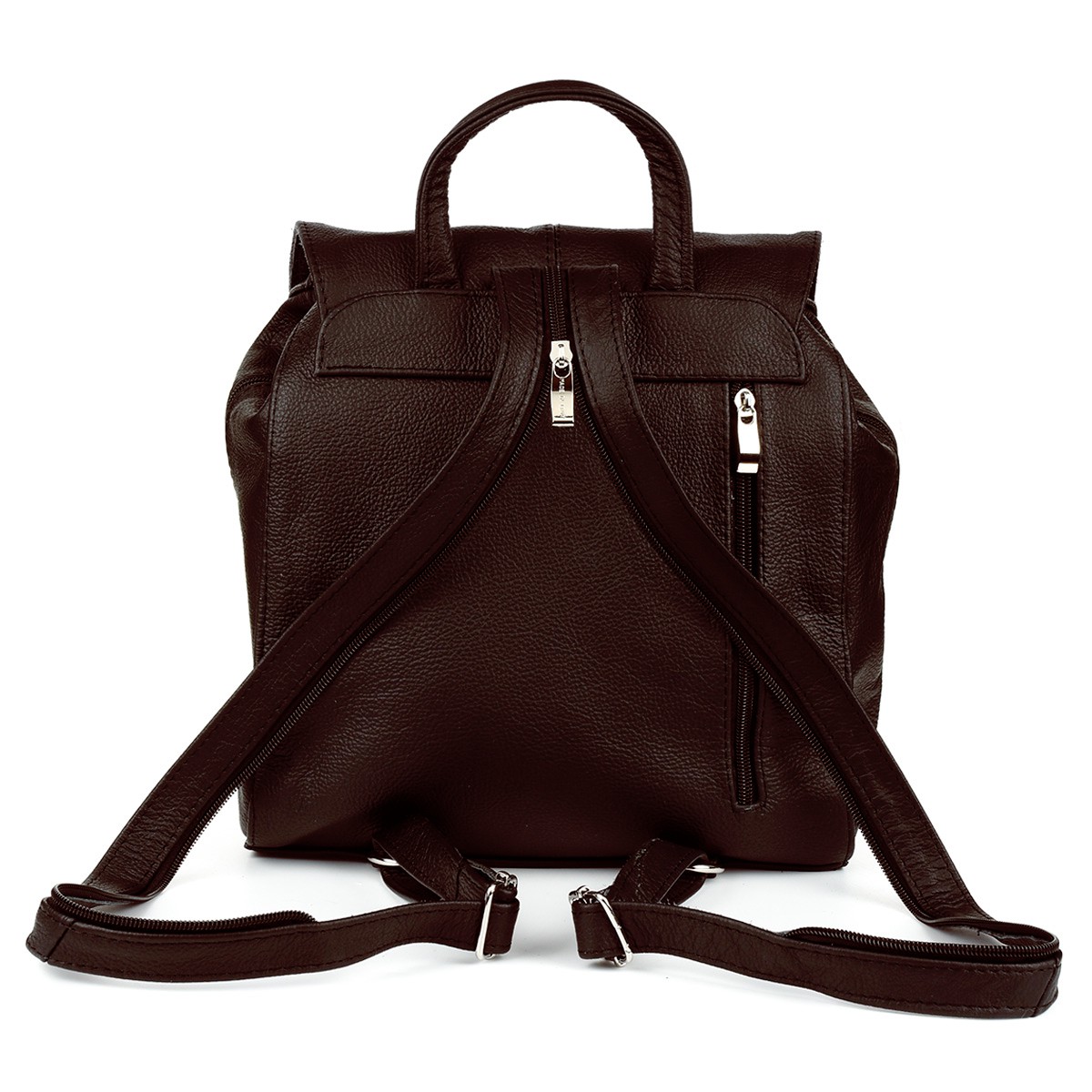 Solidny, skórzany, damski plecak, wyprodukowany w Polsce, ze skóry naturalnej w ciemno-brązowym kolorze.