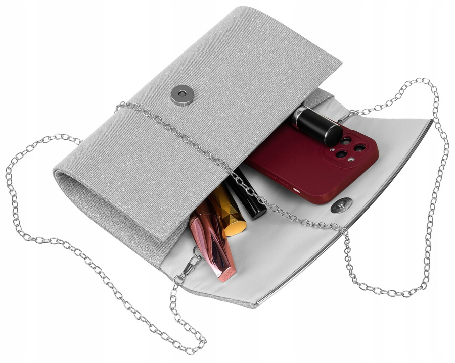 To od Ciebie zależy czy będziesz nosiła tę torebkę w ręku, czy na ramieniu. Wraz z torebką otrzymasz srebrny łańcuszek o długości 116 cm. Łańcuszek możesz odpiąć w łatwy sposób w ciągu kilku sekund.