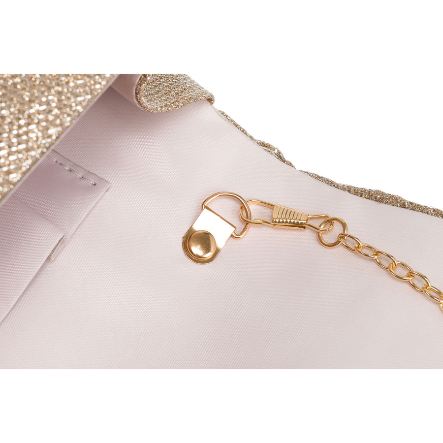 Brokatowa, złota kopertówka damska z tkaniny syntetycznej – Rovicky