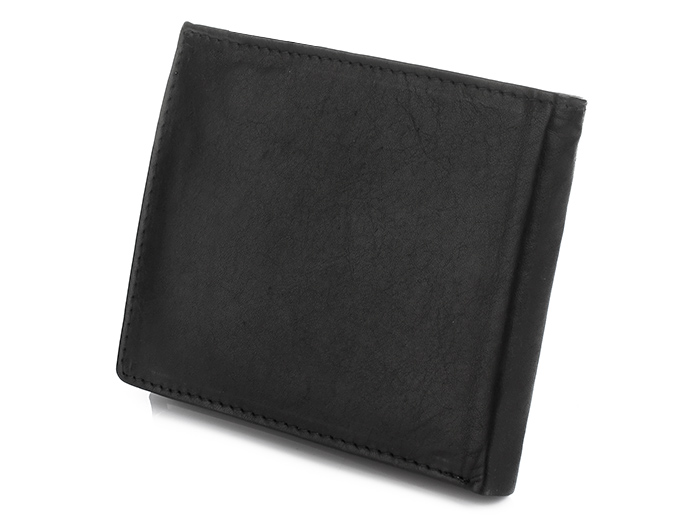 Portfel wykonany jest ze skóry naturalnej, farbowany niejednolicie, orientacja pozioma, bez zapinki zewnętrznej