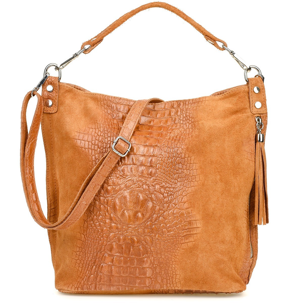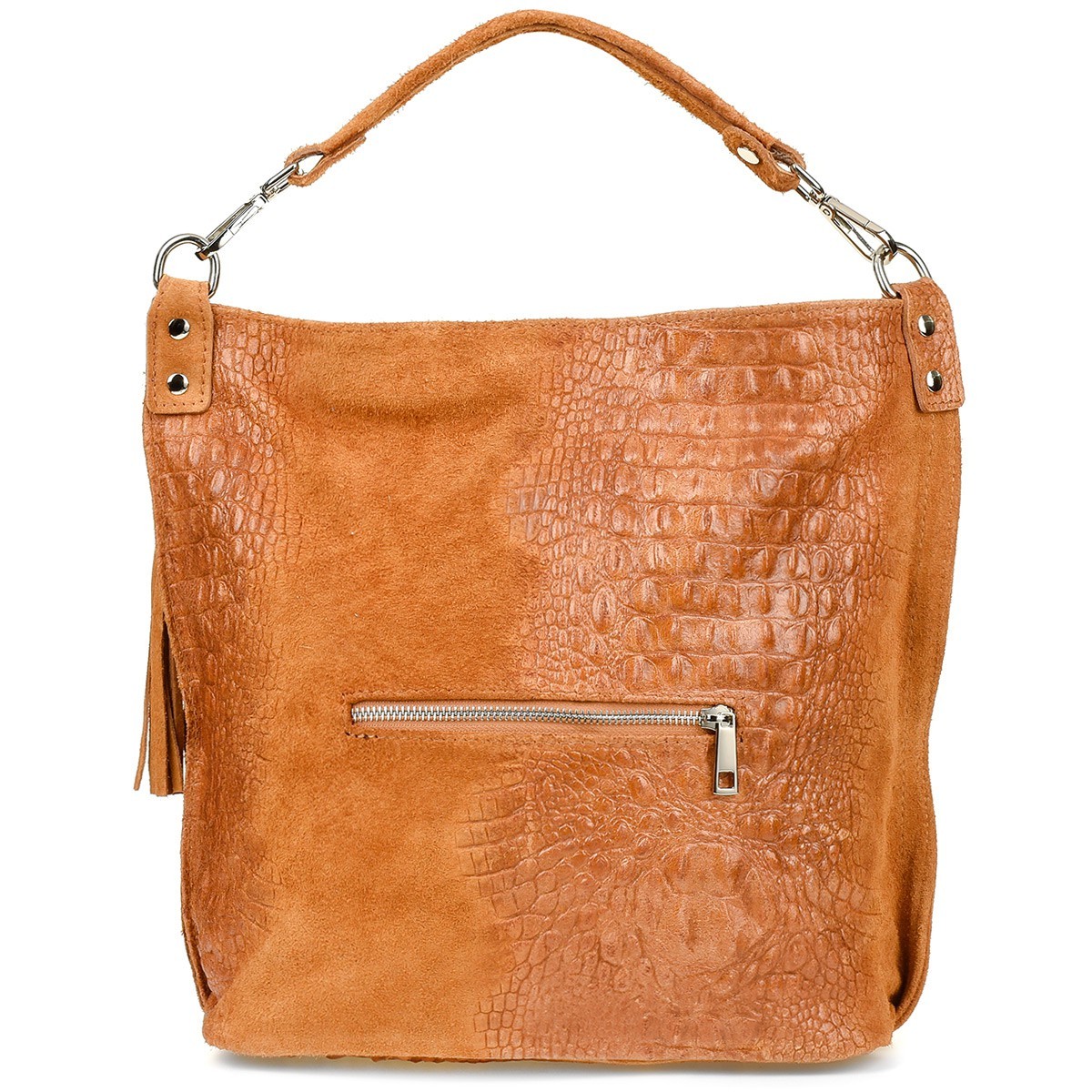 - Modną ozdobę stanowi również długi, zamszowy frędzel, będący brelokiem bocznej kieszonki torby