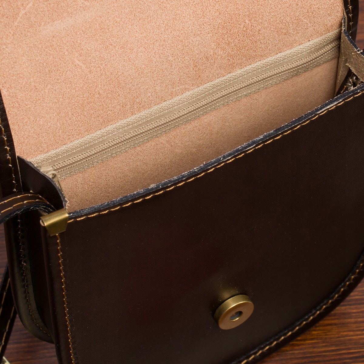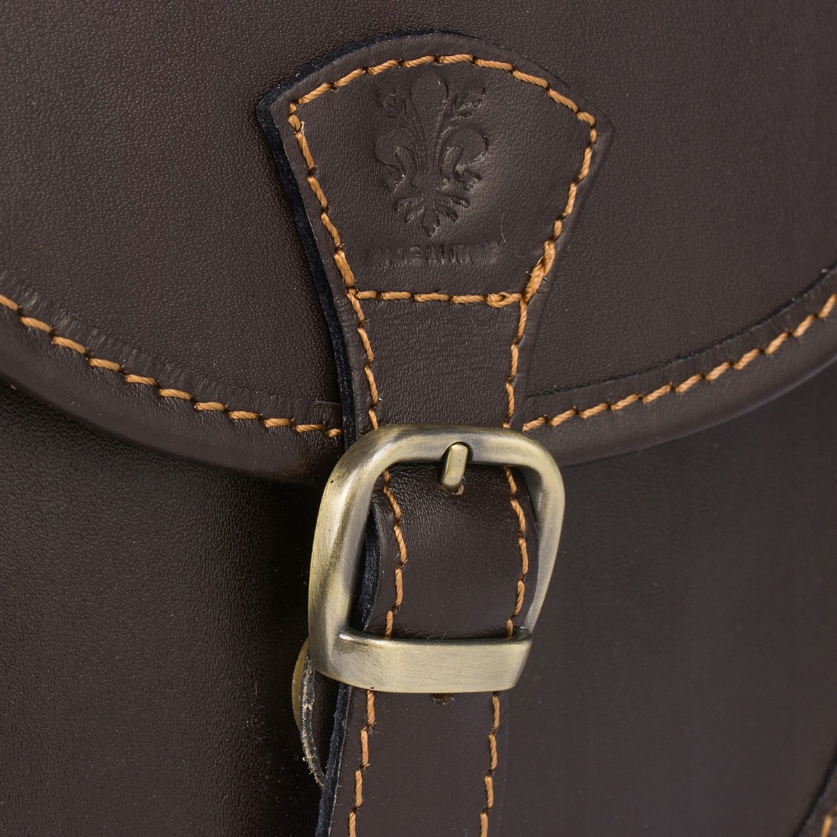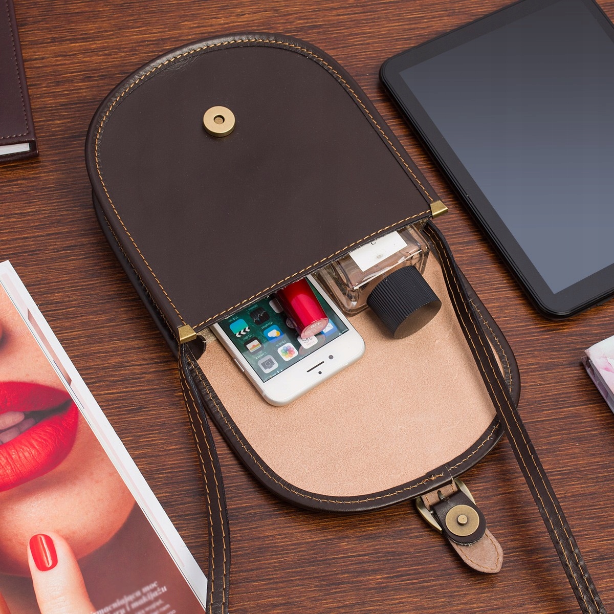 Ciemno brązowa Beltimore Damska Skórzana Mała Torebka Listonoszka podkówka