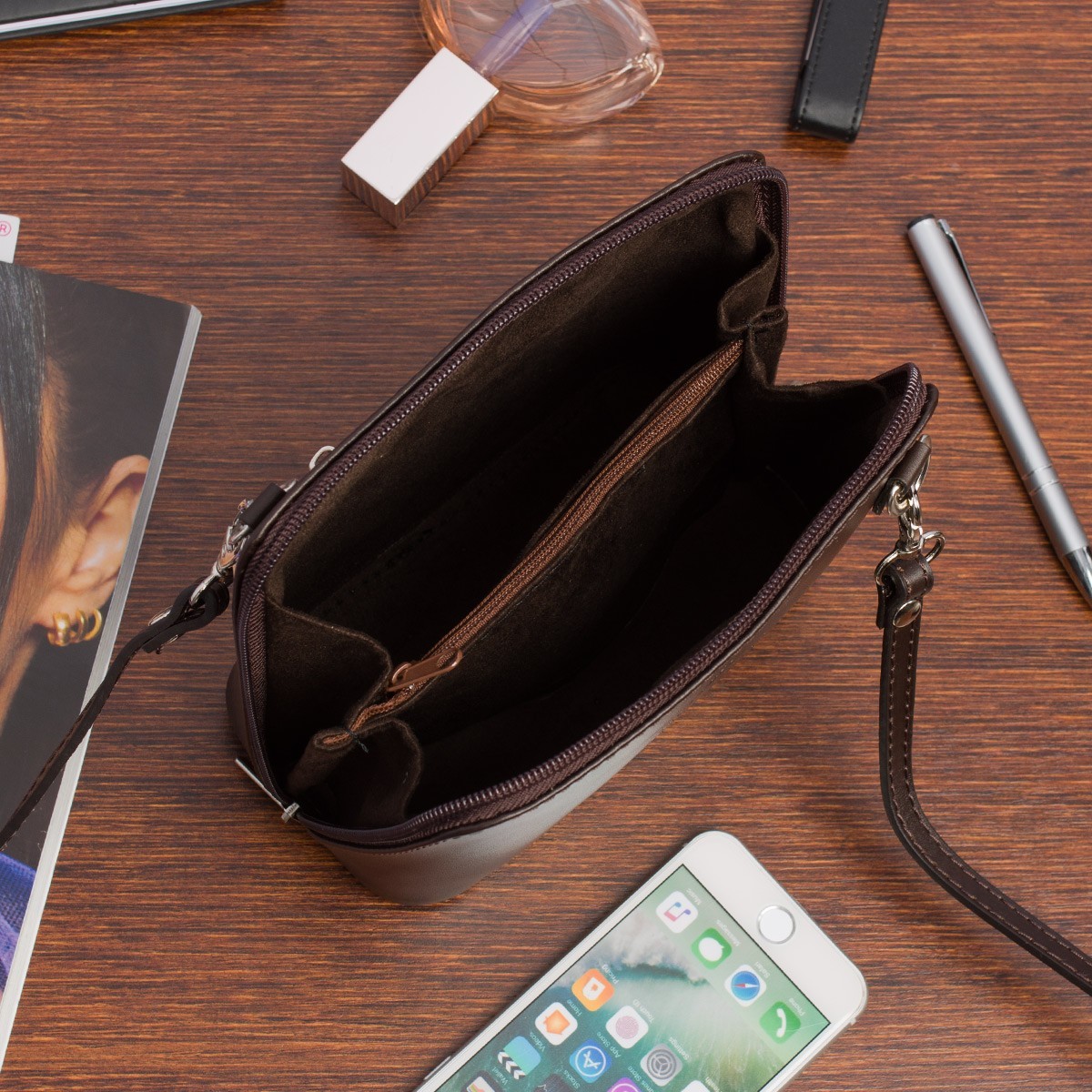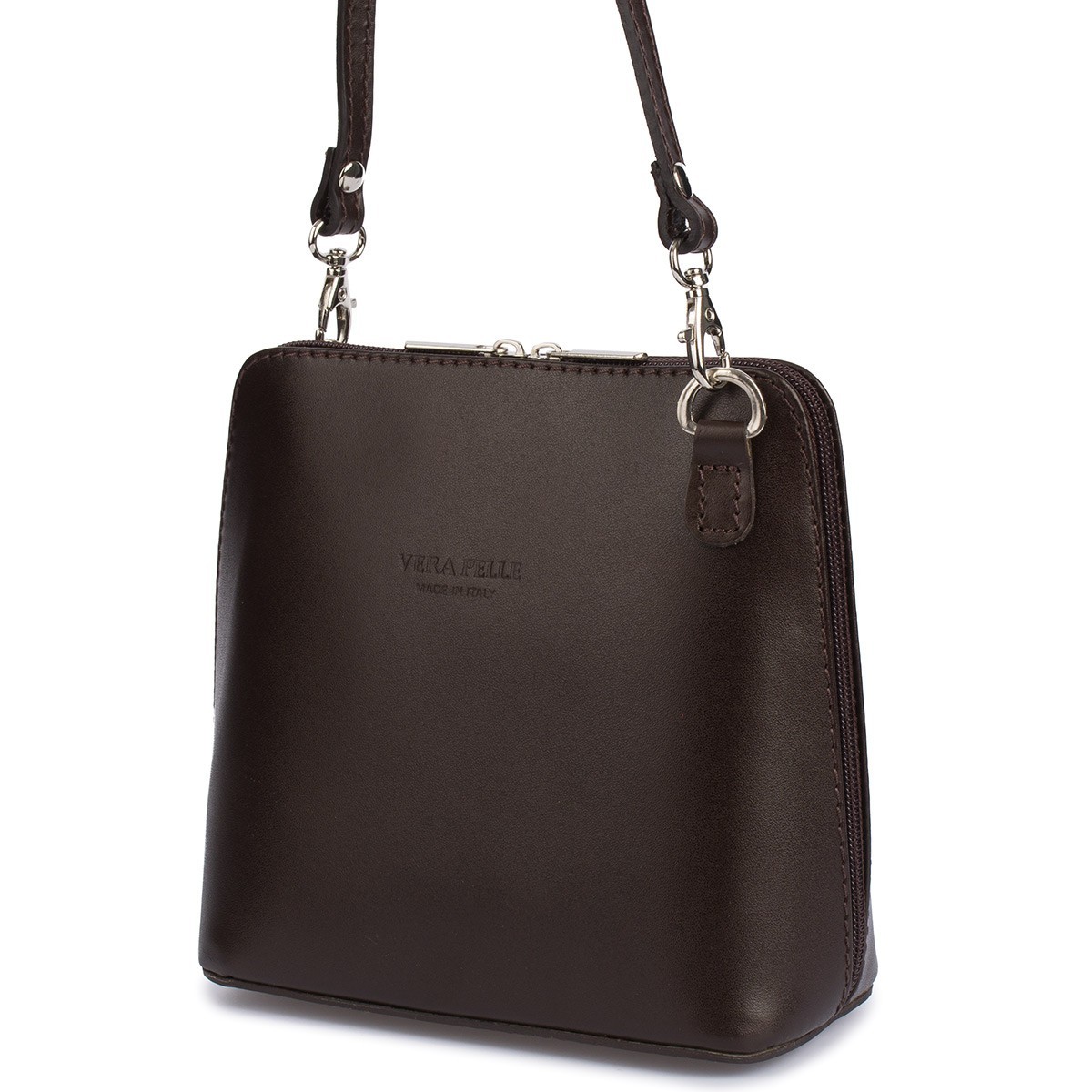 Ciemno brązowa Vera Pelle mała listonoszka skórzana modna K03