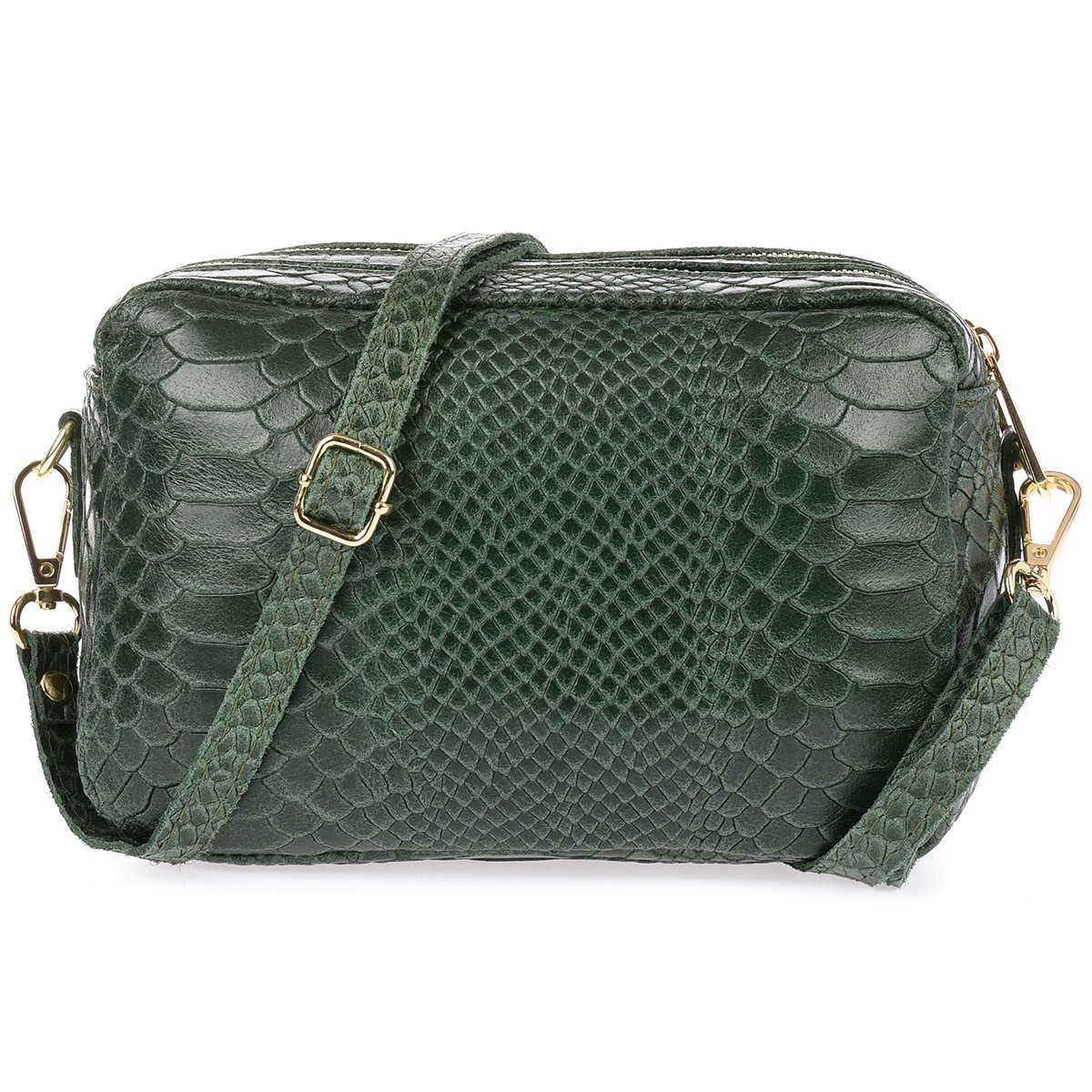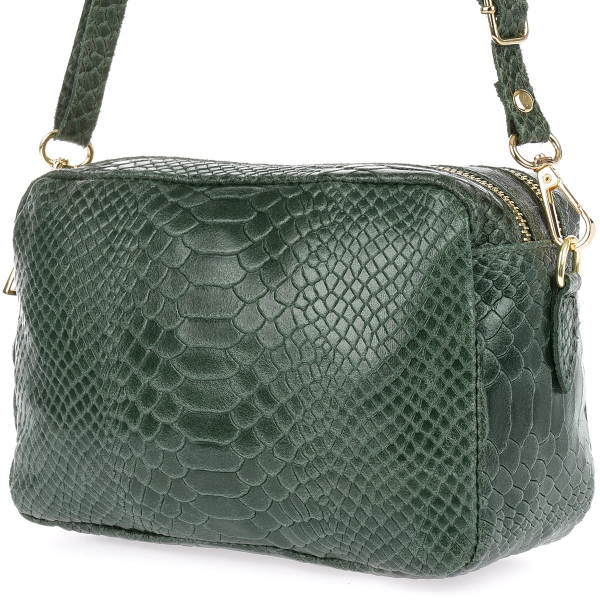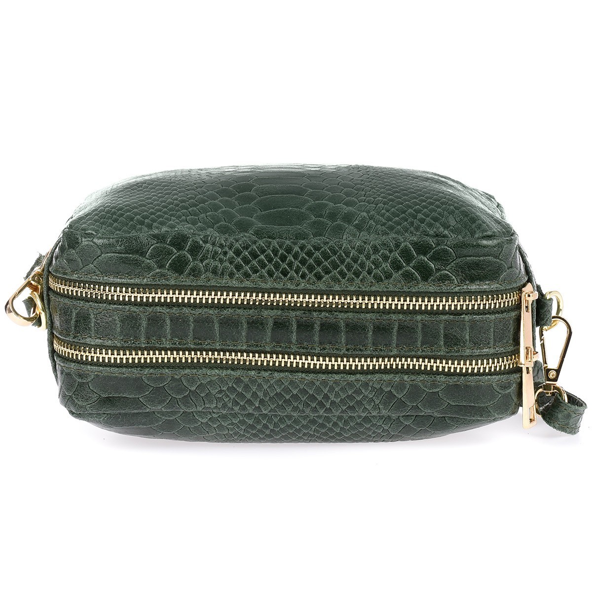 Ciemno zielona skórzana listonoszka damska włoska croco kuferek Beltimore P12