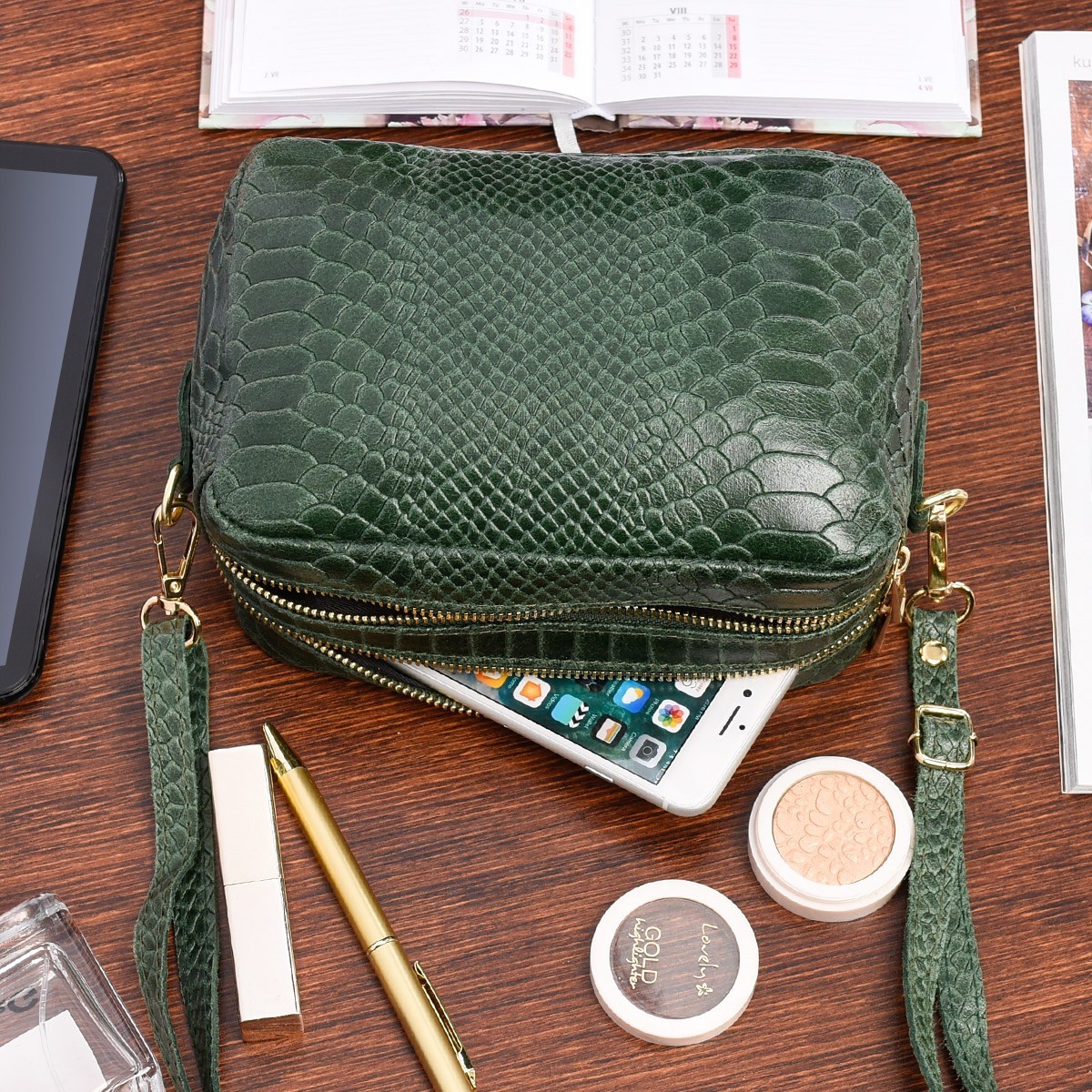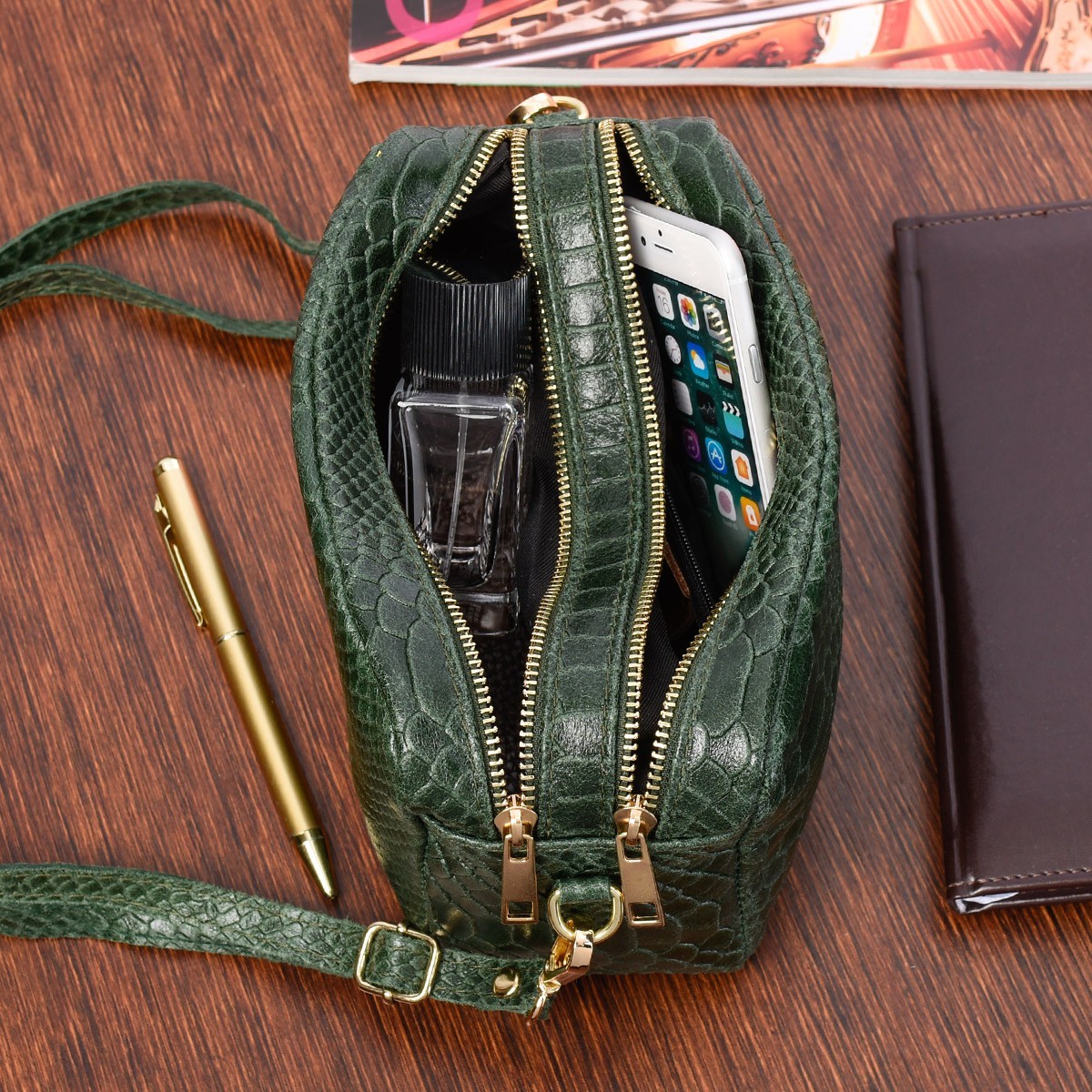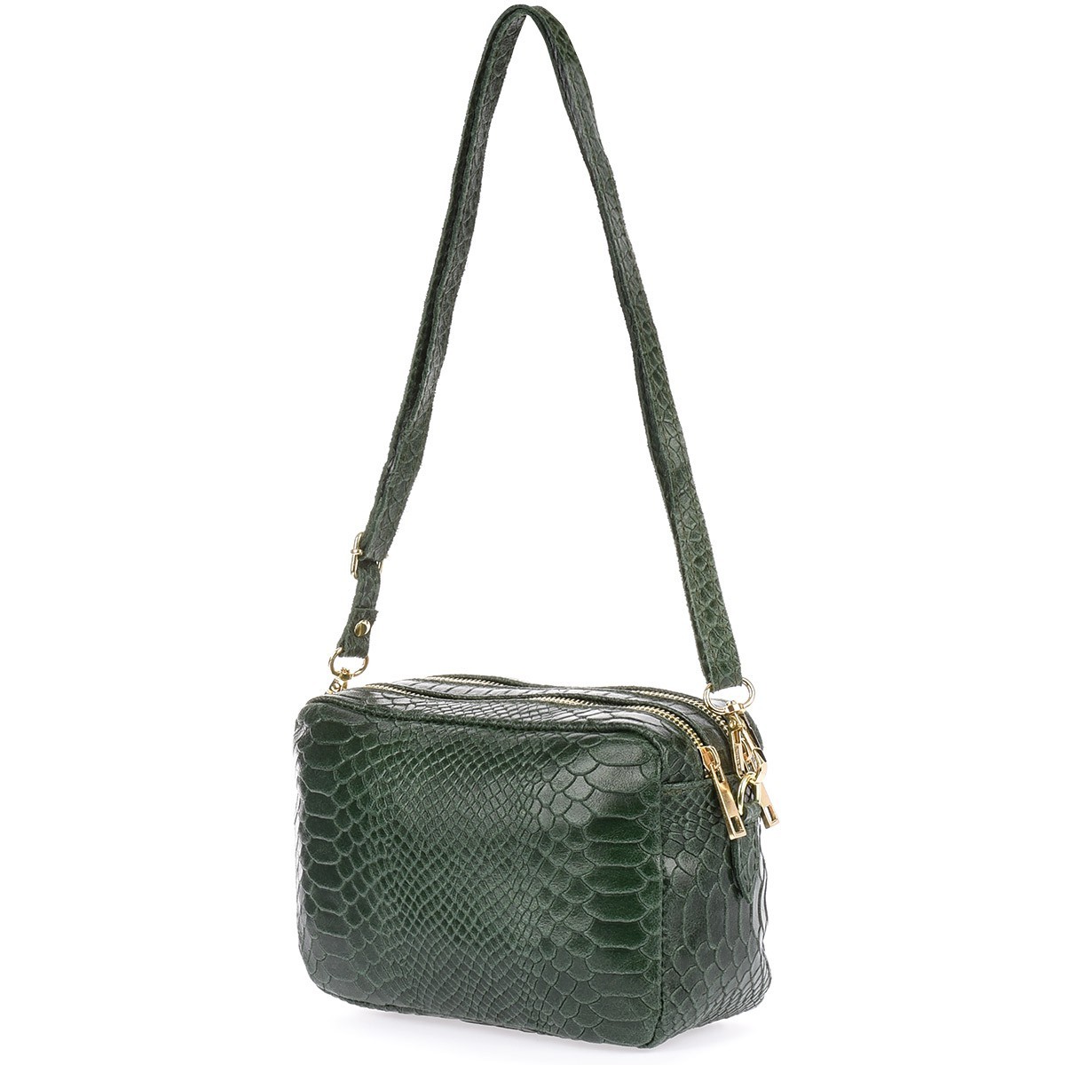 Ciemno zielona skórzana listonoszka damska włoska croco kuferek Beltimore P12