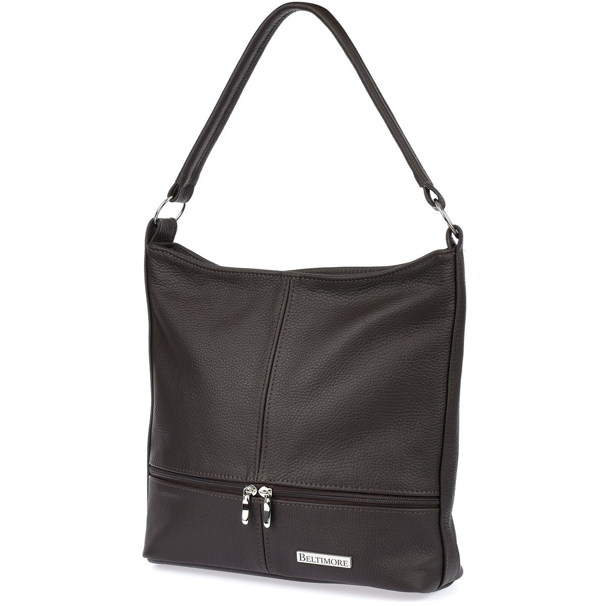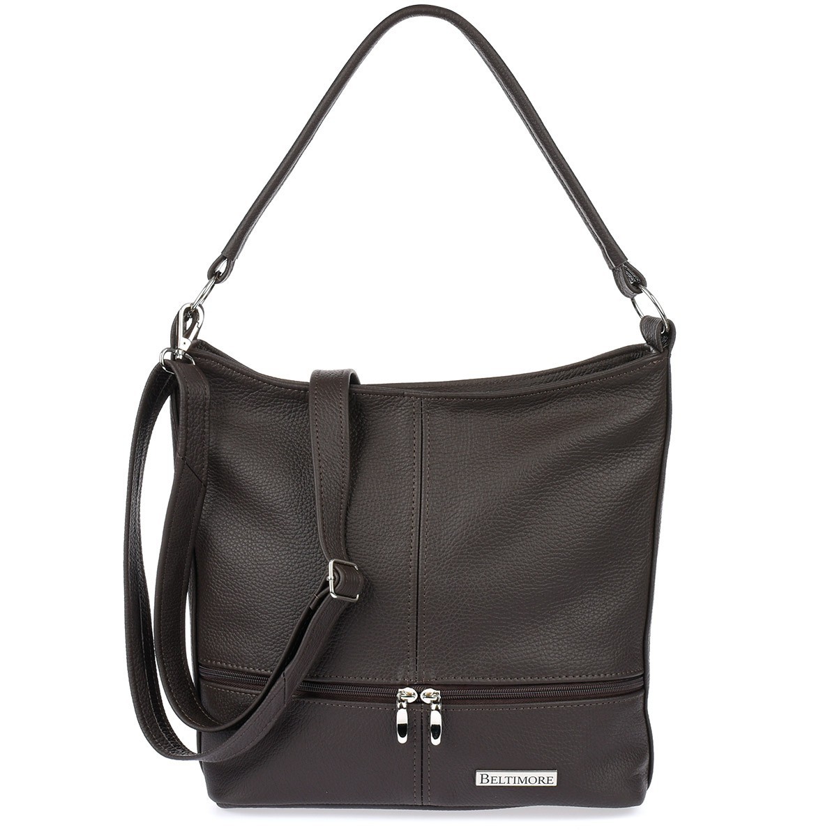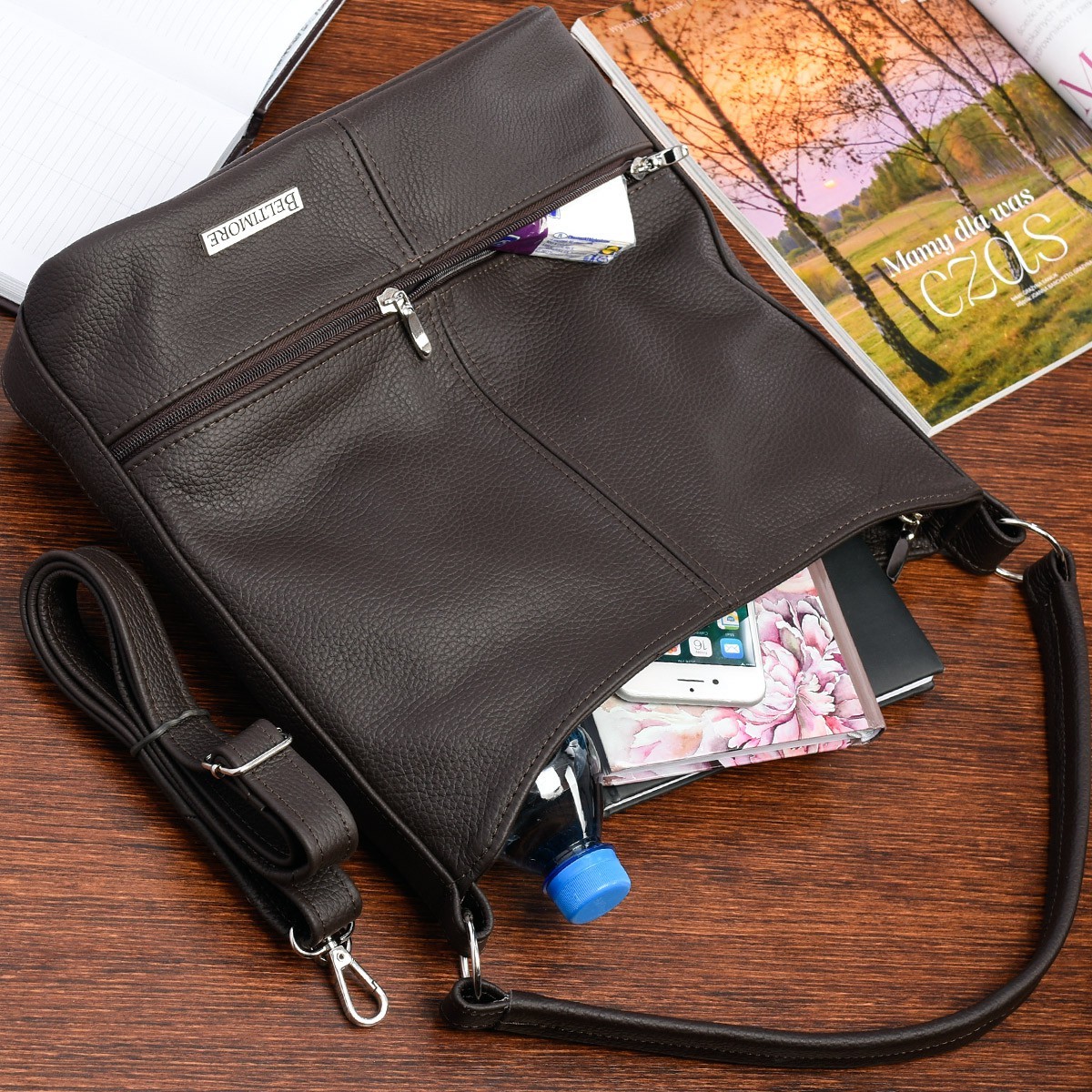 Ciemnobrązowa skórzana listonoszka dwa paski Beltimore I66