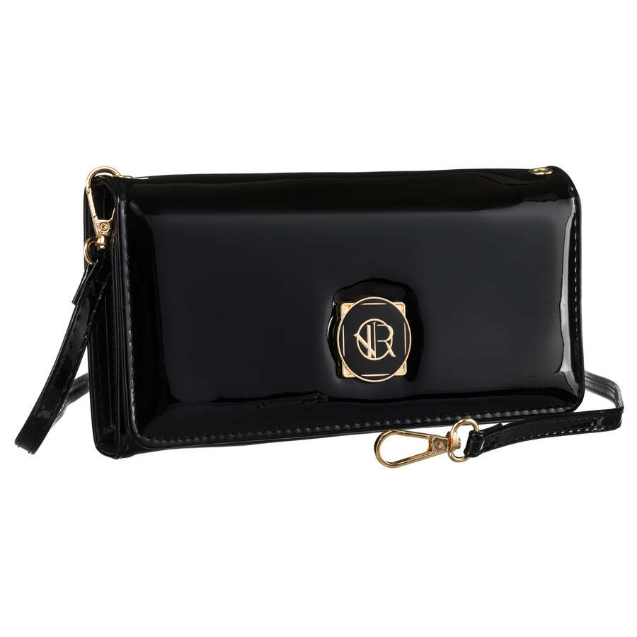 Czarna, elegancka torebka 2w1 wykonana z lakierowanej skóry ekologicznej – Rovicky
