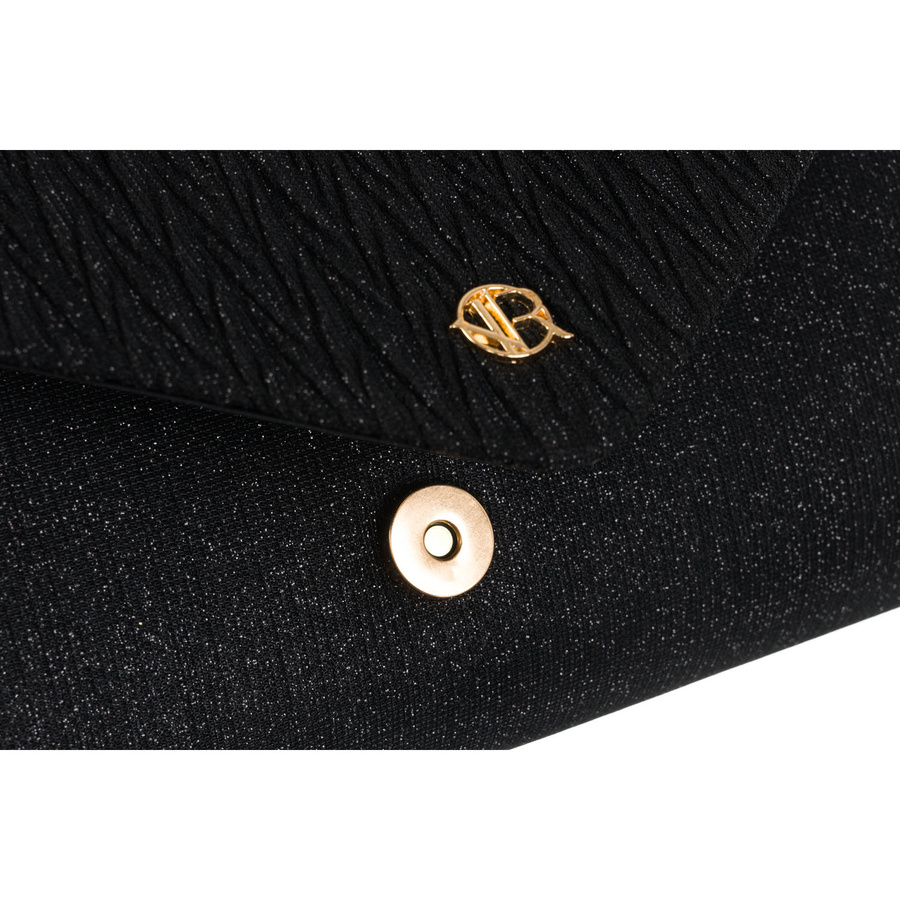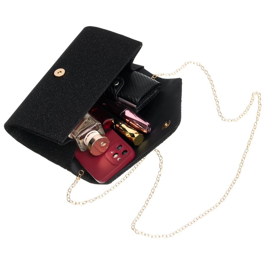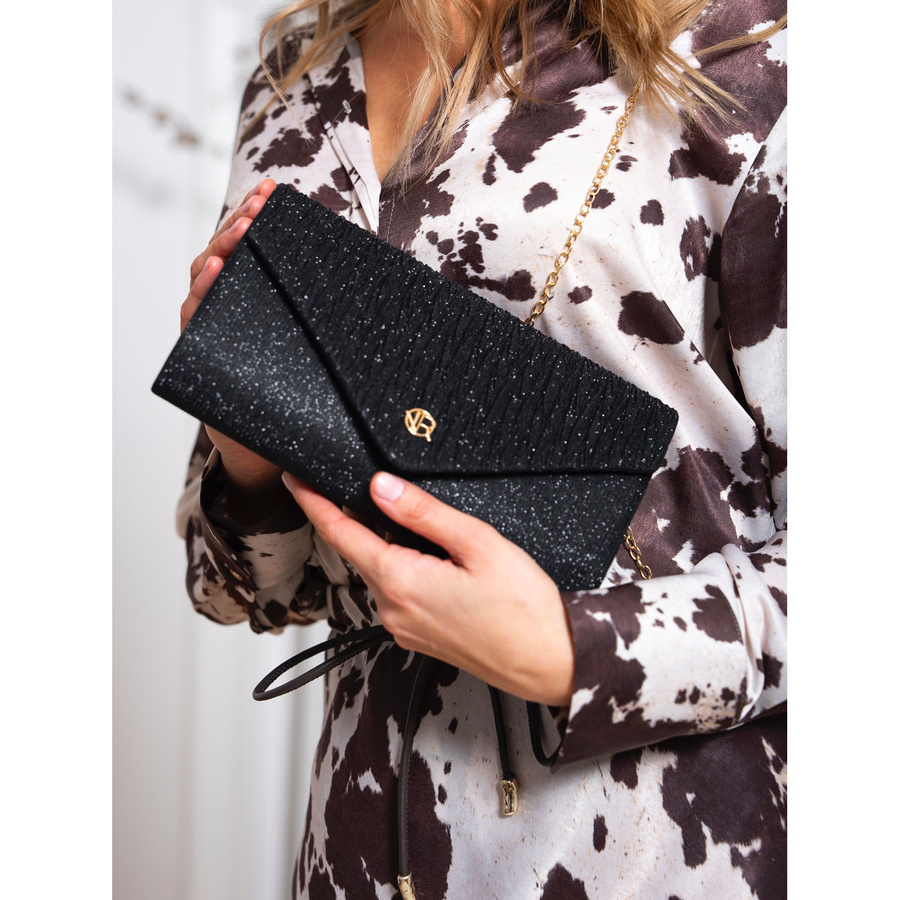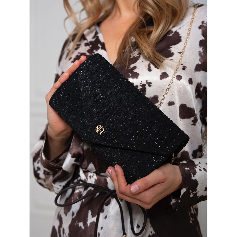 Czarna kopertówka damska ze wzorem w jodełkę zawieszona na łańcuszku – Rovicky