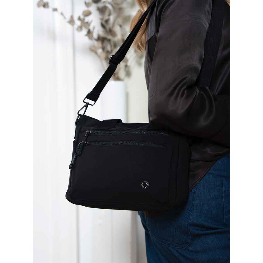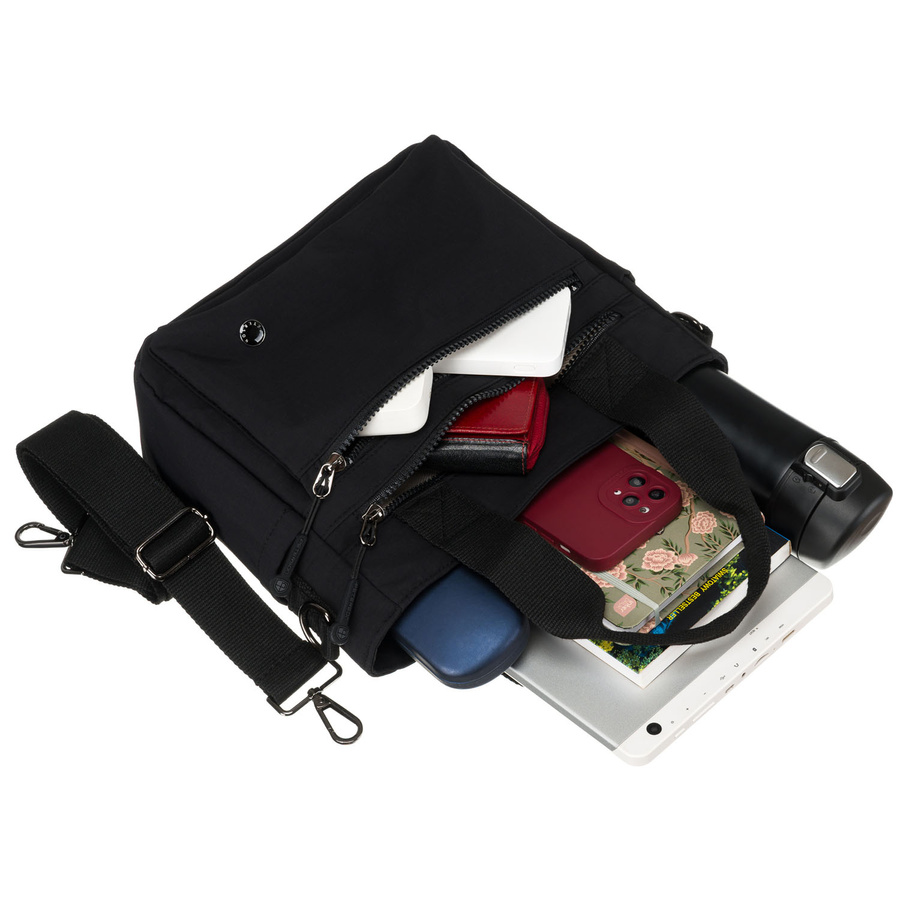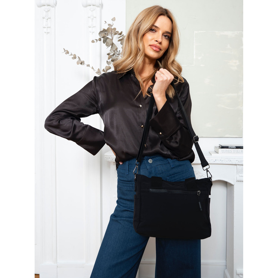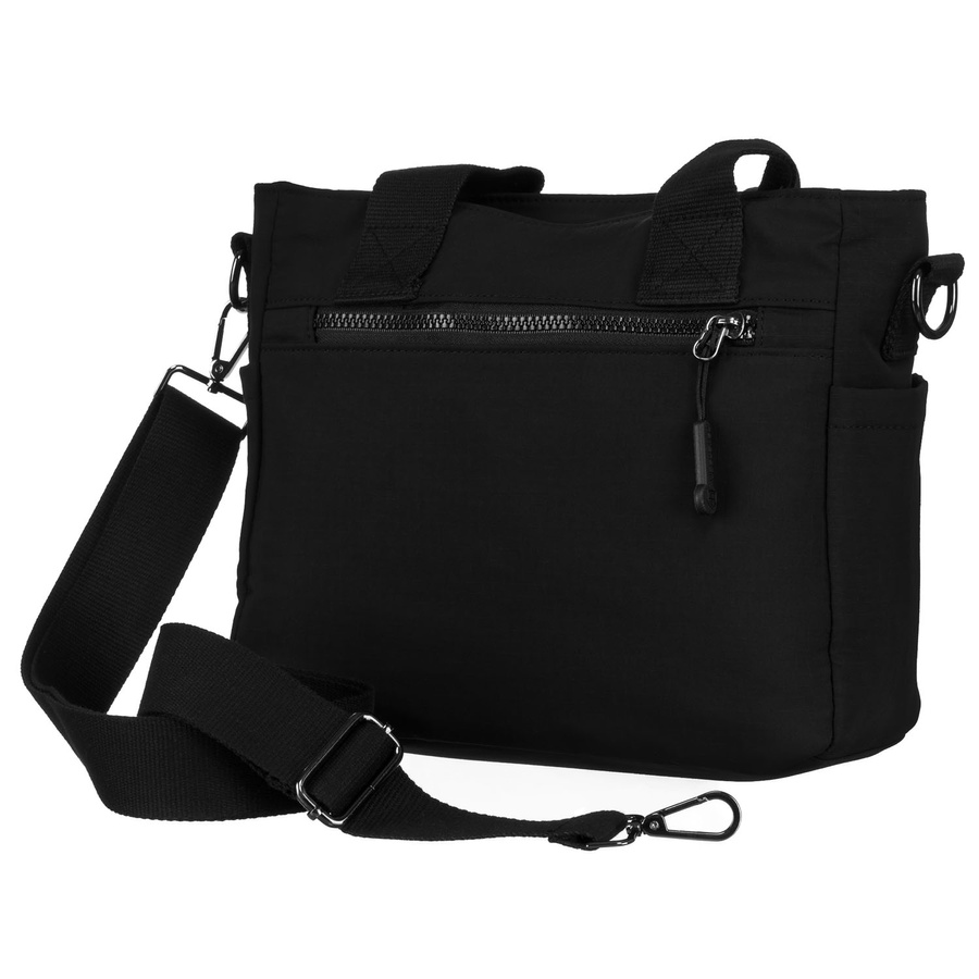 Czarna shopperka damska z poliestru z uchwytami i dopinanym paskiem – Peterson