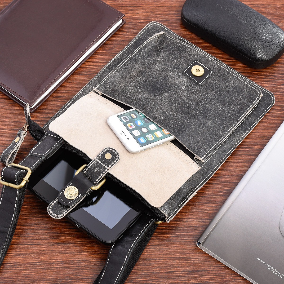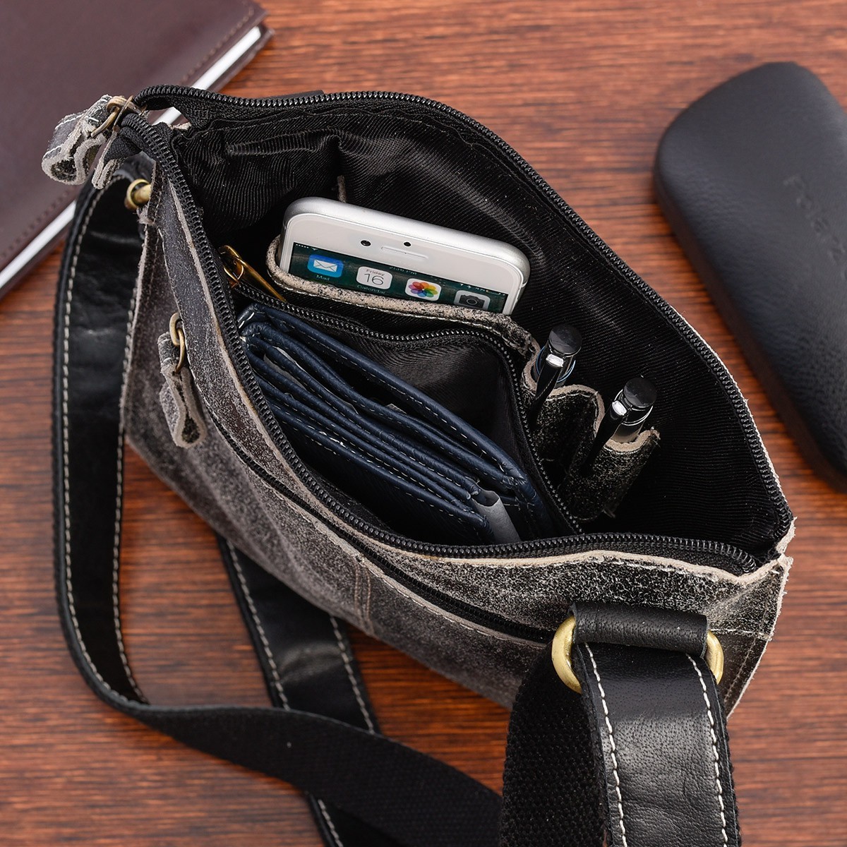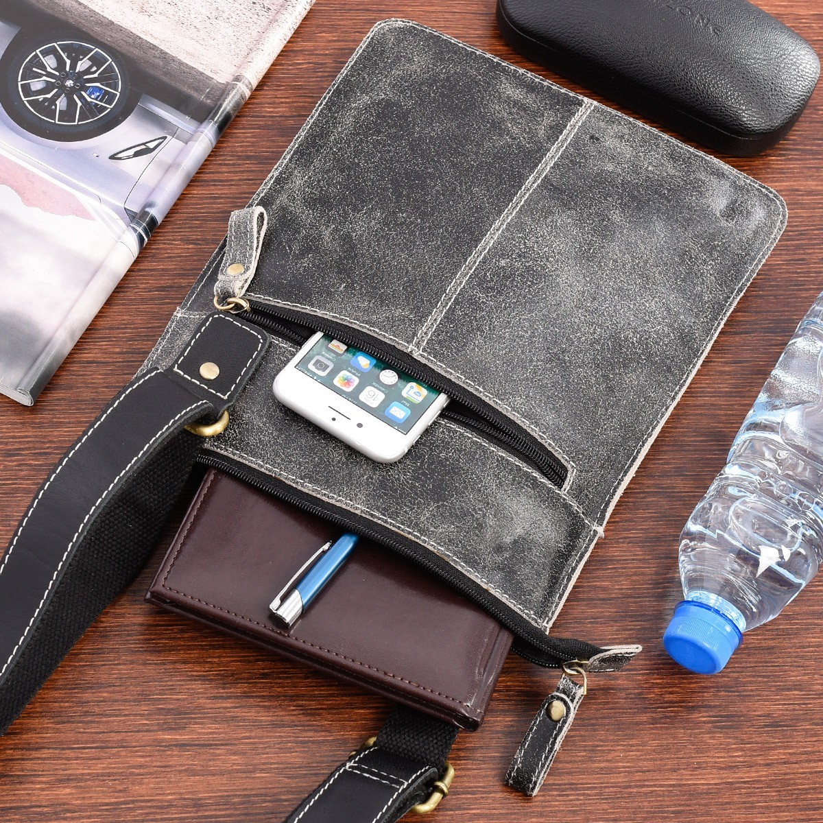 Ekskluzywna, wysokiej jakości, mała, męska torba na ramię, wykonana z naturalnej skóry nubuk
