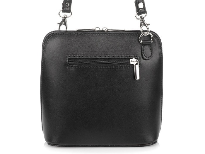Torba wykonana jest z pięknej, fantastycznie pachnącej skóry naturalnej. Pomimo niewielkich rozmiarów jest pojemna. Torebka ma doczepiany, długi, pasek o długości 120cm. Torba jest gładka lekko lakierowana, dzięki czemu prezentuje się efektownie. Z tyłu jest dodatkowa zasuwana kieszeń. Do głównej komory dostajemy się dzięki dwom obustronnym suwakom. W środku jest zasuwana przegroda, dzieląca torebkę na dwie części.