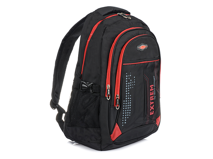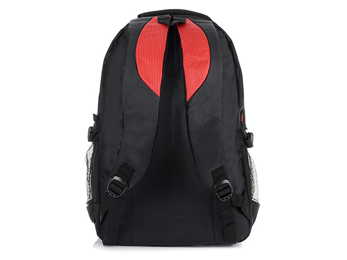 Czarno czerwony plecak miejski, trekkingowy, wytrzymały T19