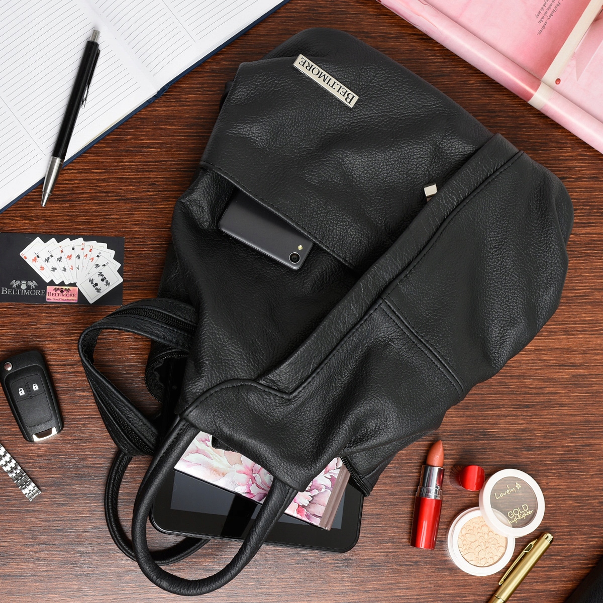 Czarny Beltimore Plecak Damski Skórzany Trójkąt Pojemny Q60
