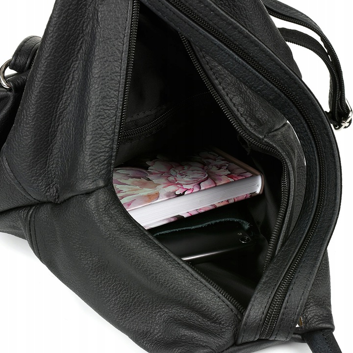 ➤Kieszenie wewnętrzne: – 2 boczne, małe, na telefon, klucze lub inne drobiazgi: 1 zasuwana i 1 otwarta