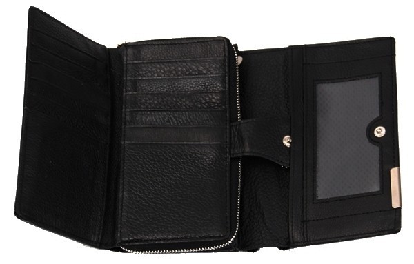 – 1x przeźroczysta kieszeń na zdjęcie lub ID lub dowód rejestracyjny – 3x duże przegrody na banknoty, paragony, papiery, dokumenty i inne. – 1x dwukomorowa kieszeń na bilon zasuwana na mocny suwak – 1x duża wewnętrzna kieszeń zasuwana – 3x duże wewnętrzne kieszenie – 1x długa kieszeń wzdłuż portfela |