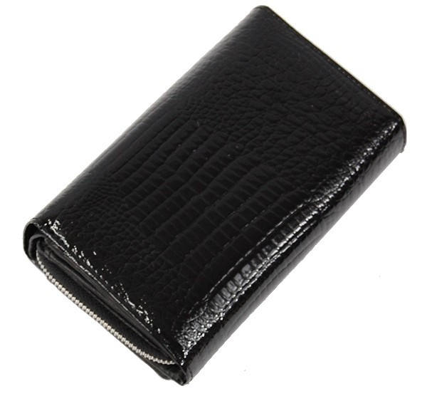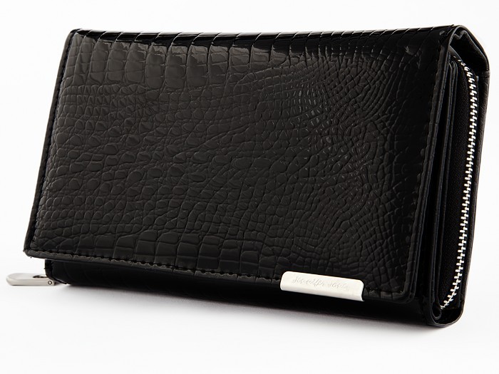 czarny ELEGANCKI DAMSKI PORTFEL SKÓRZANY LAKIER 827